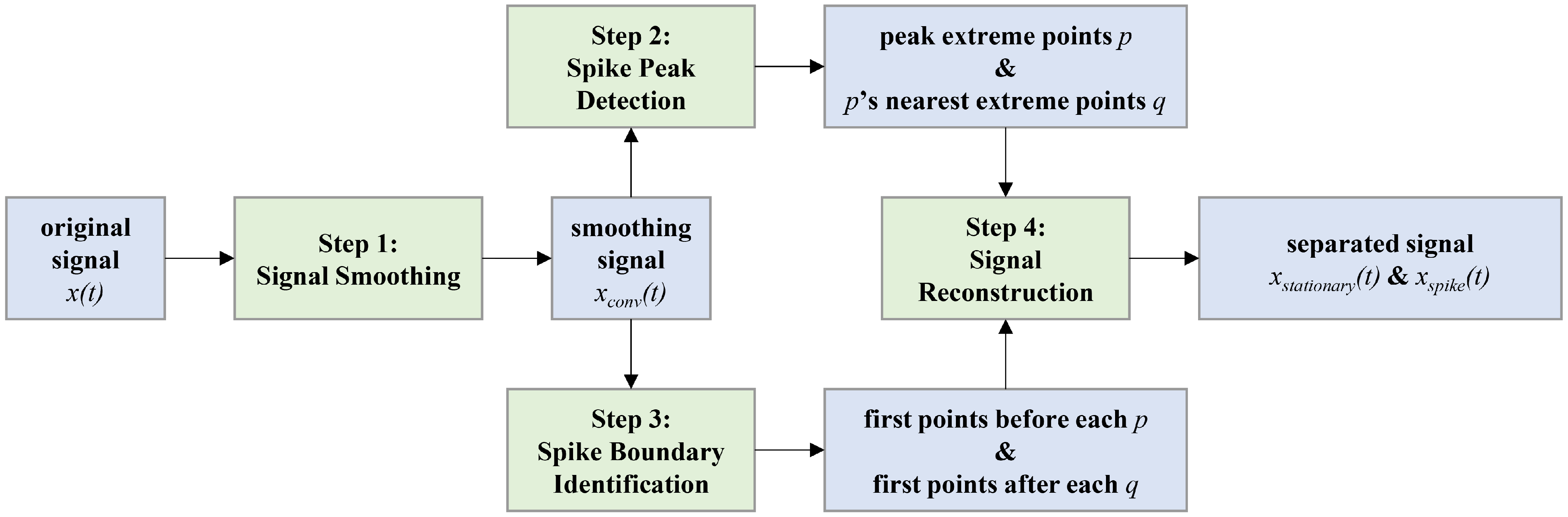 | D | Ours w/o spike separation | Wavelet: Daubechies 4; Decomposition layer: 9; : 0.95; WNN wavelet: Morlet; Hidden layer: 11; Learning rate: 0.001 | 0.249 | 0.925 | 0.963 | 0.369 | 0.834 | 0.914 | 0.520 | 0.672 | 0.823 |