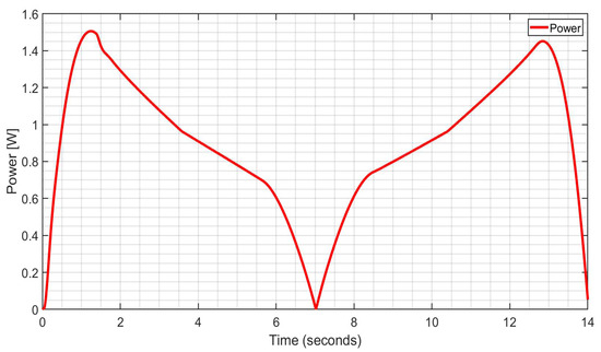 Computed power consumption is computed with the results in the plot in Figure 22 showing a repetitive cyclic pattern corresponding to the flexion–extension cycle of the arm exercise.