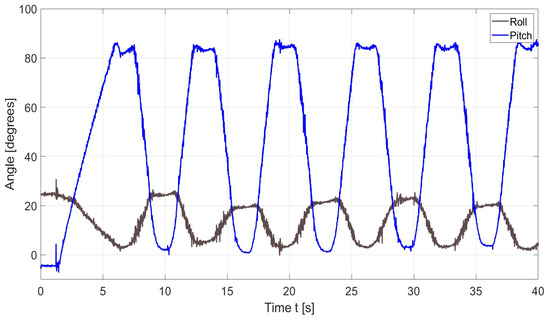 Acquired data of a test like in Figure 19b in terms of pitch and roll angle.
