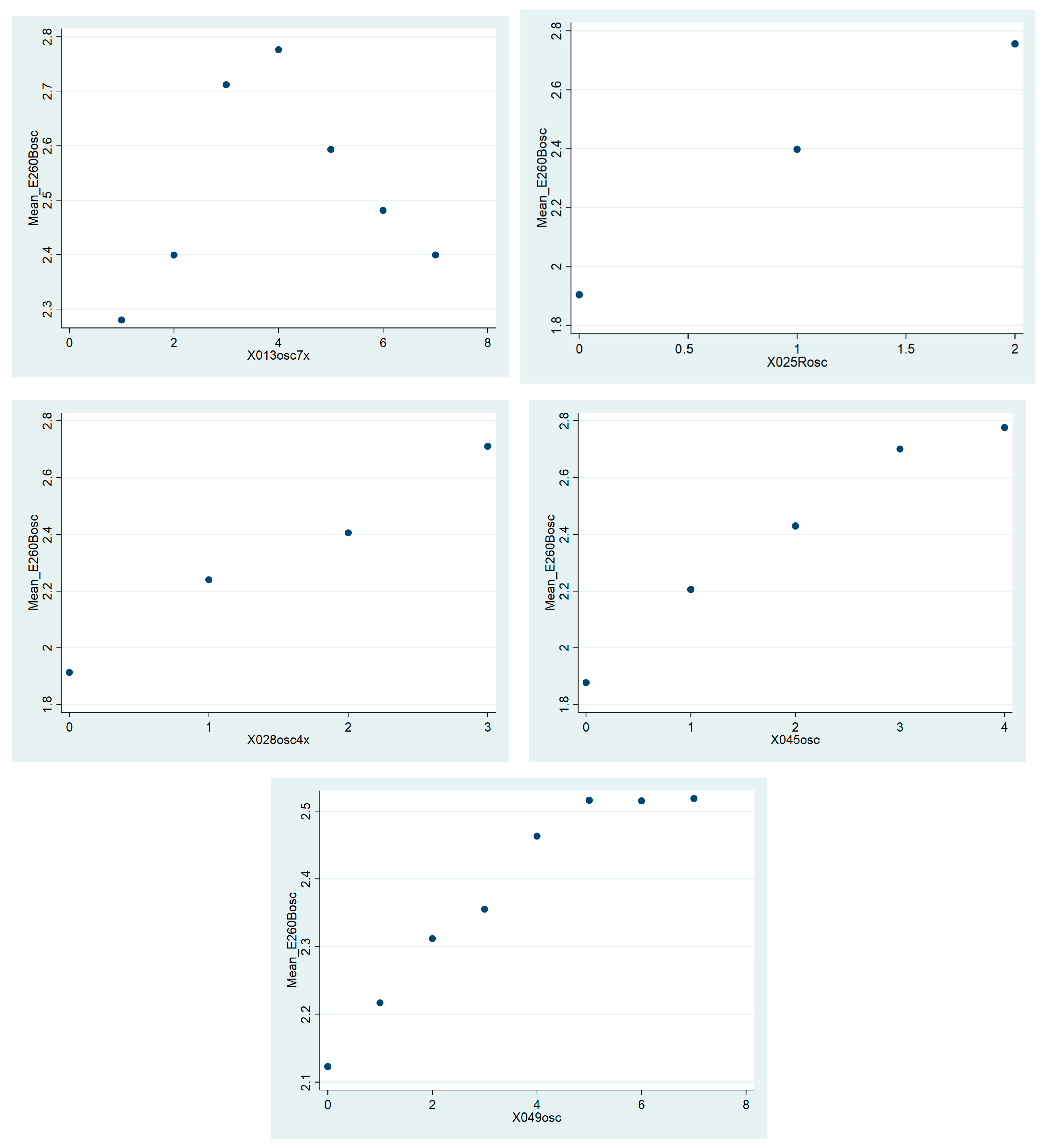 | 1 generate E260BBin=. 2 replace E260BBin = 1 if E260B!=. & E260B>=1 & E260B<=4 3 replace E260BBin = 0 if E260B==5 4 label list E260B 5 tabulate E260B 6 tabulate E260BBin (Online at https://drive.google.com/u/0/uc?id=1BAIYNAizhRp4beeXxBBiTtvqHrxsMLIW&export=download) |