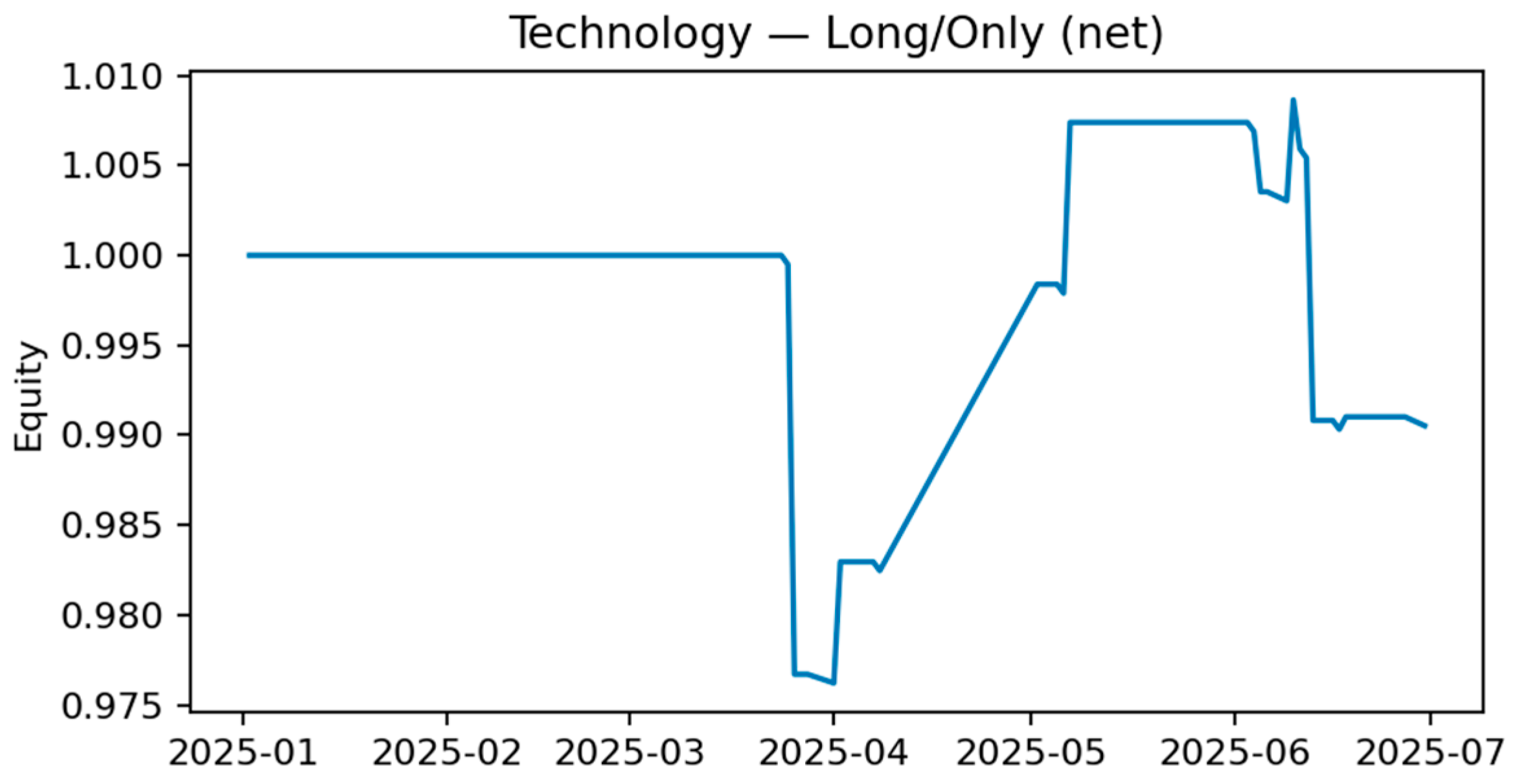 This demonstrates that even a primarily reflexive sentiment signal, when systematically applied, can be a valuable component in constructing profitable, sector-specific strategies. The full equity curves for all backtested strategies are provided in
