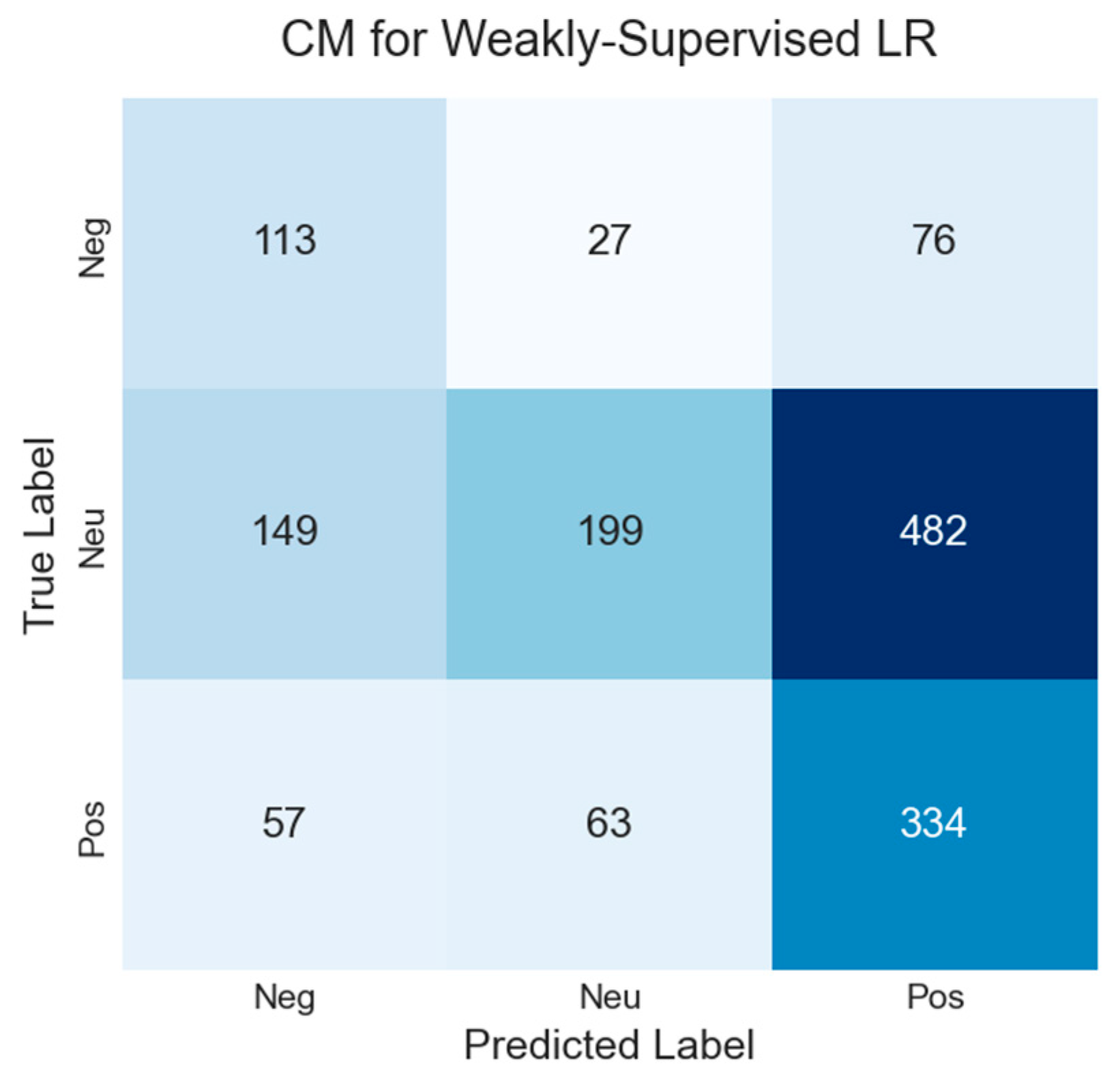 The baselines exhibit varied but generally weaker performance. The zero-shot FinBERT, while the best of the non-fine-tuned models, still only achieves a macro F1-score of 0.555, underscoring the challenge of out-of-domain generalization. Lexicon-based methods like VADER (F1 of 0.433) and even the domain-specific LM lexicon (F1 of 0.482) perform poorly, confirming their inability to adapt to the diverse and noisy language of multi-sector headlines. The model trained on weak supervision (Weakly Supervised LR) performs similarly to the simple lexicon methods, reinforcing the limitations of this approach, which we explore further in