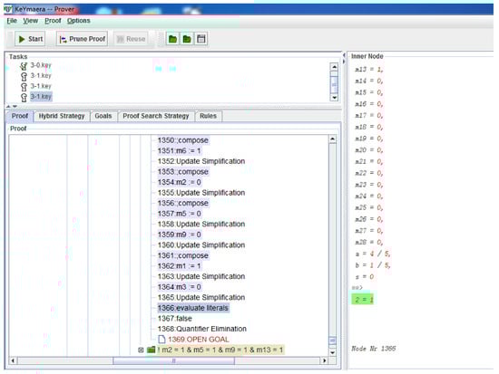 Then, we run KeYmaera to verify this property, and it gives the result “2 = 1” in the Inner Node part of this tool, which is shown in Figure 5. This means that supplier is selected which indicates that the model violates the property.