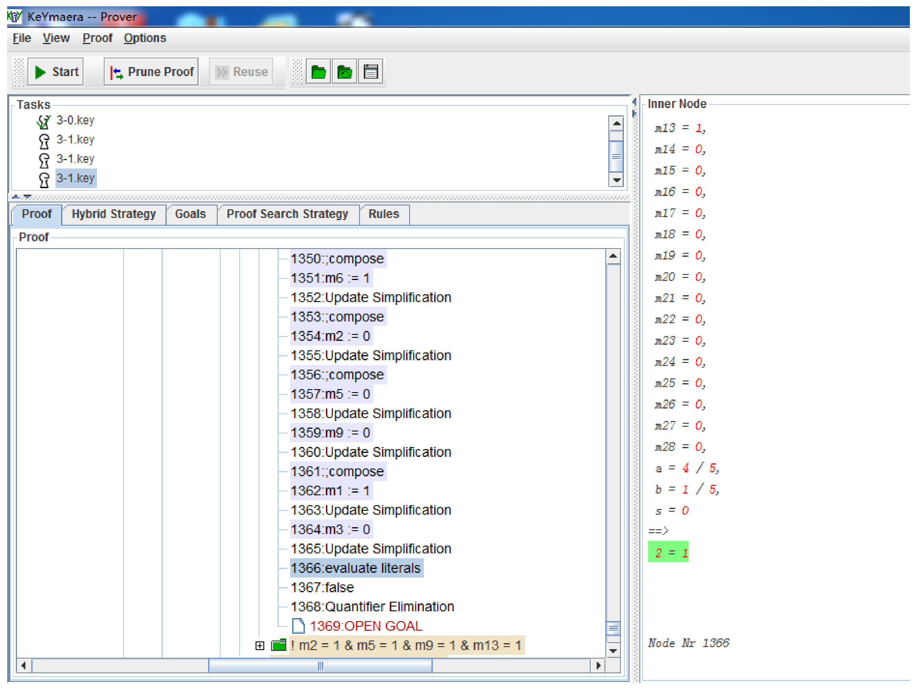 Then, we run KeYmaera to verify this property, and it gives the result “