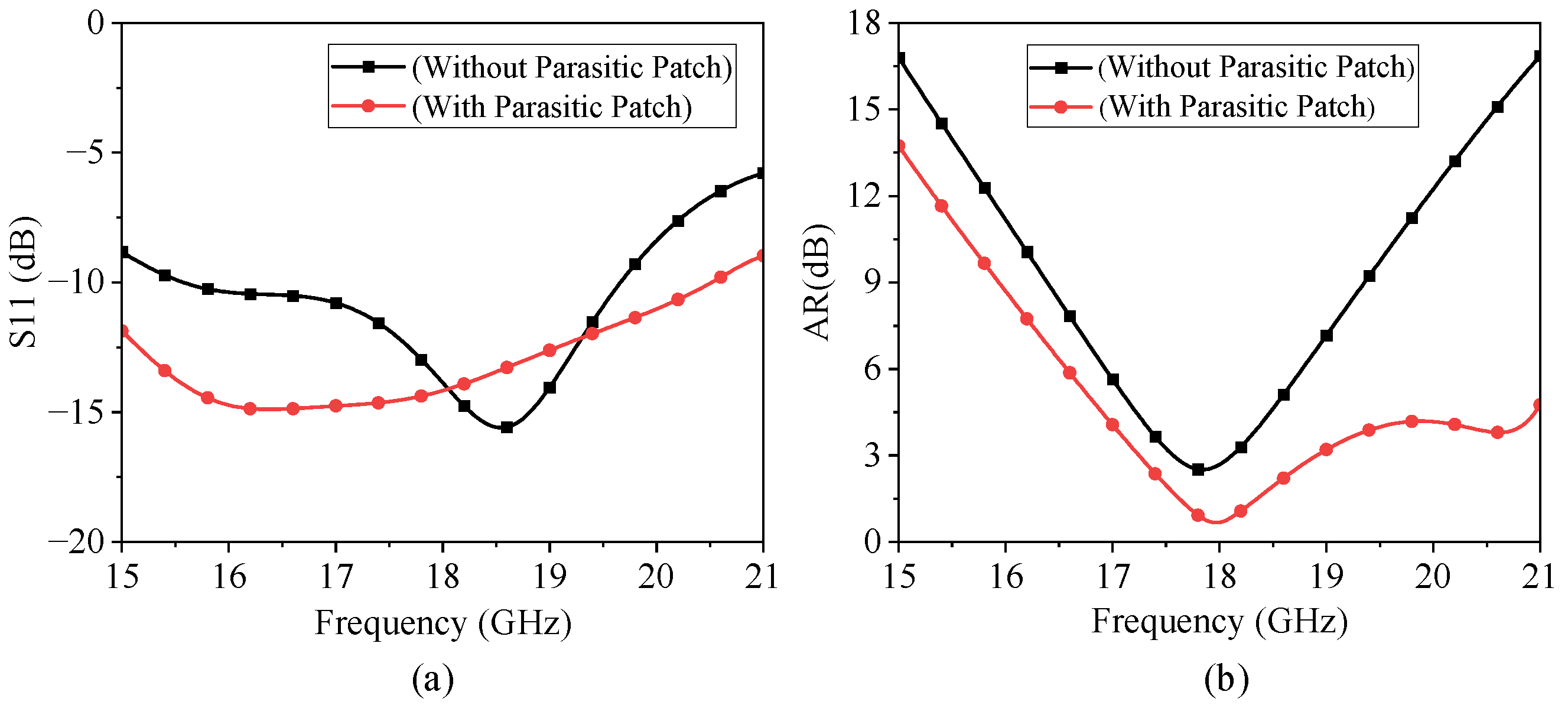 - Enhanced circular polarization achieved via strong coupling between the square-ring radiator and stacked parasitic patch;