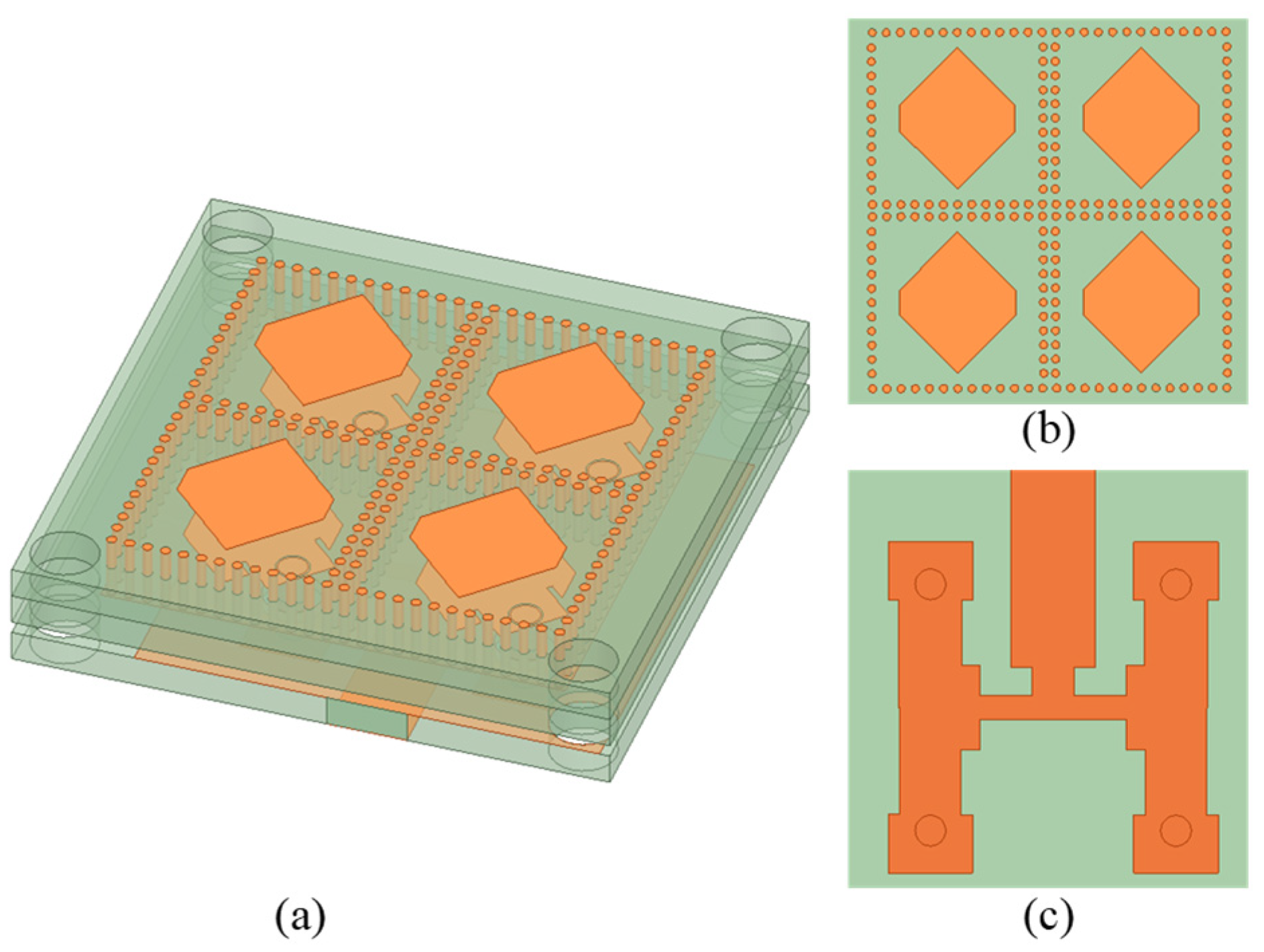- Liao, H.; Shamim, A. A Low-Profile and High-Aperture-Efficiency Hexagonal Circularly Polarized Microstrip Antenna Array. IEEE Antennas Wirel. Propag. Lett. 2022, 21, 615–619. [Google Scholar] [CrossRef]