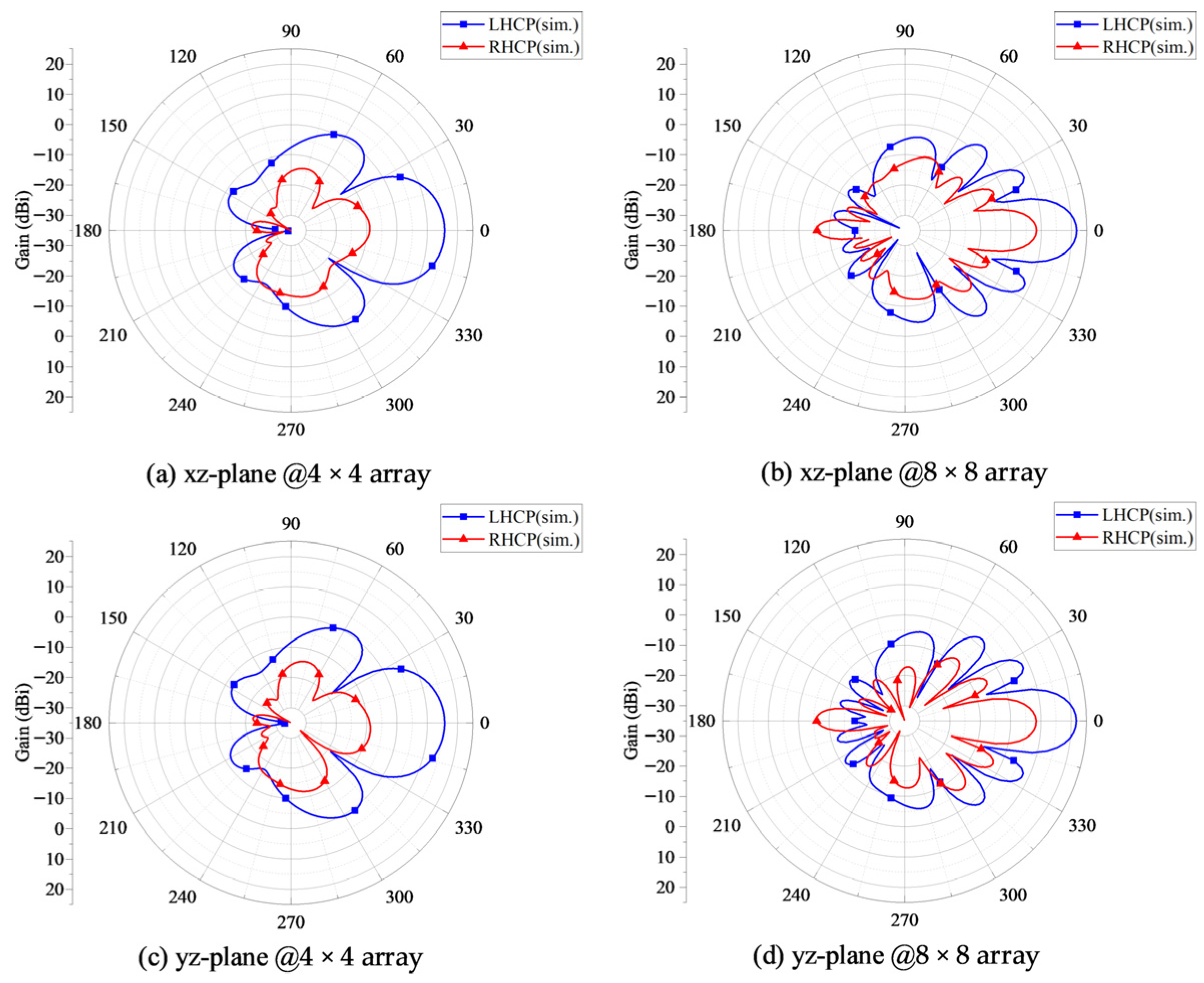 4.2. 4 × 4 Array and 8 × 8 Array
