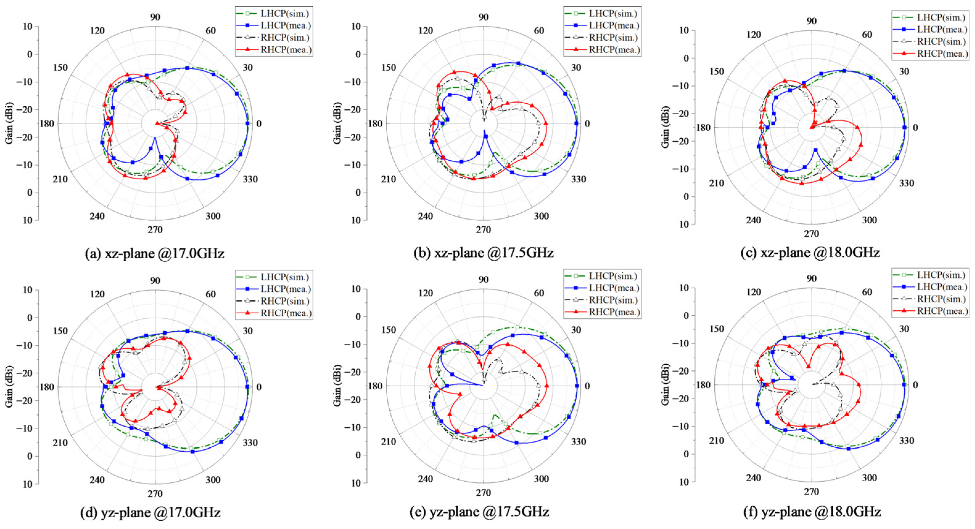 - Park, S.-J.; Park, S.-O. LHCP and RHCP Substrate Integrated Waveguide Antenna Arrays for Millimeter-Wave Applications. IEEE Antennas Wirel. Propag. Lett. 2017, 16, 601–604. [Google Scholar] [CrossRef]