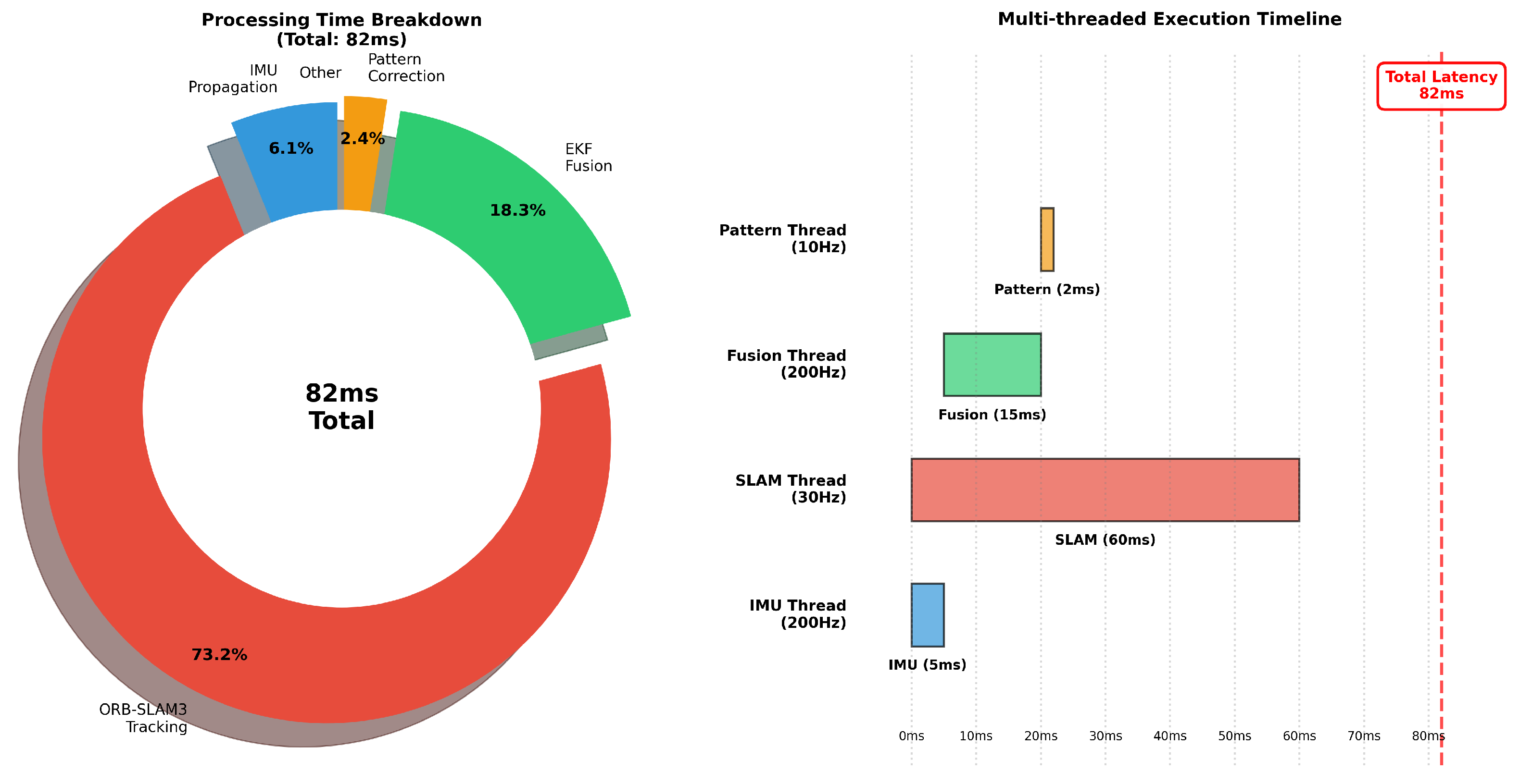 | SLAM Thread | 60 ms | 95 ms | Cores 2–4 + GPU |