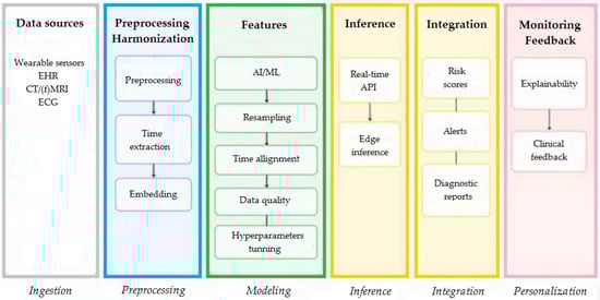 - Tasmurzayev, N.; Amangeldy, B.; Imanbek, B.; Baigarayeva, Z.; Imankulov, T.; Dikhanbayeva, G.; Amangeldi, I.; Sharipova, S. Digital Cardiovascular Twins, AI Agents, and Sensor Data: A Narrative Review from System Architecture to Proactive Heart Health. Sensors 2025, 25, 5272. [Google Scholar] [CrossRef]