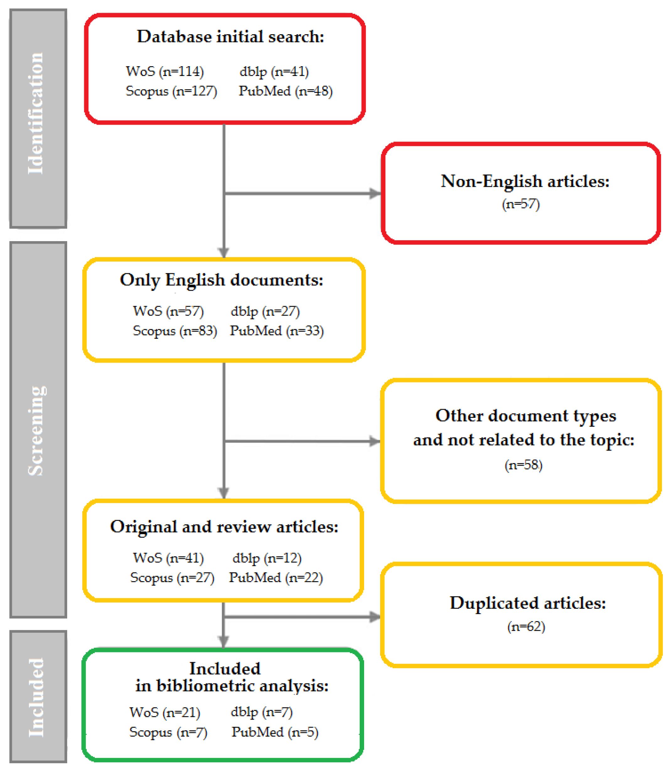 | Inclusion criteria | Books (and chaptersin books), articles (original, reviews, communication, editorials), and conference proceedings, in English |
