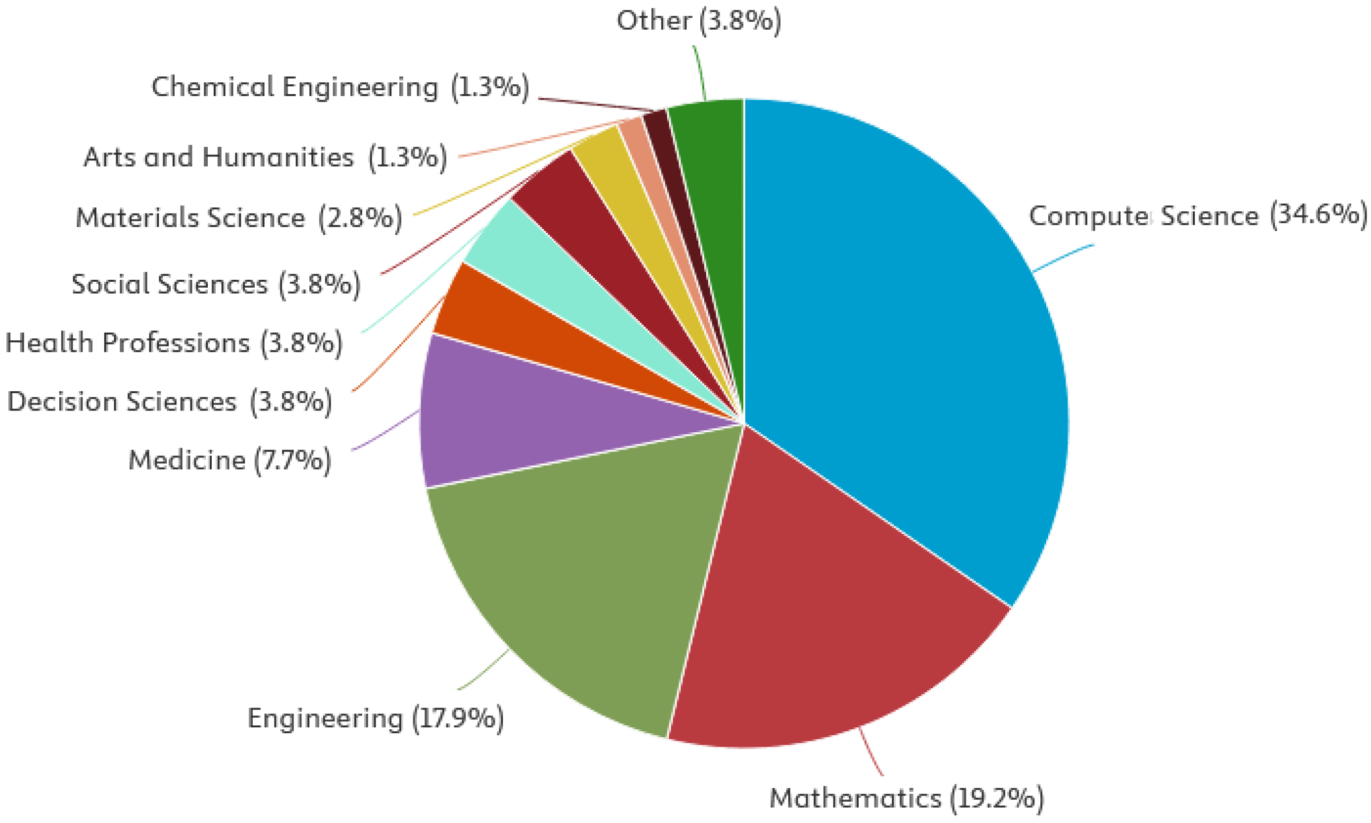 | Leading areas of science | Computer science (34.6%), Mathematics (19.2%), Engineering (17.9%) |