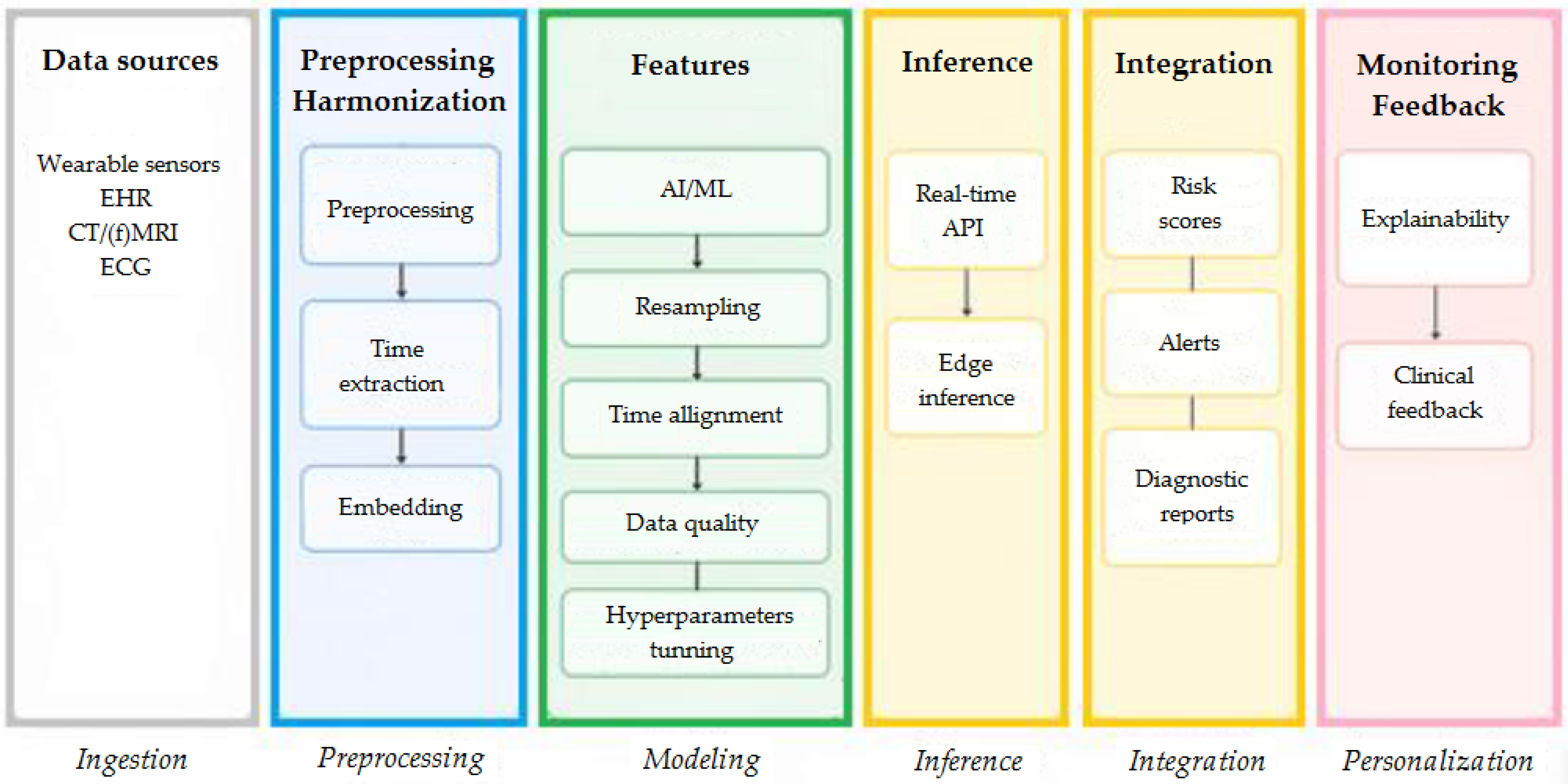 | Regulatory | Compliance/Governance | Unclear approval pathways for adaptive/continually learning models; cross-border data governance conflicts; lack of standards for wearable-derived biomarkers; auditability requirements. |