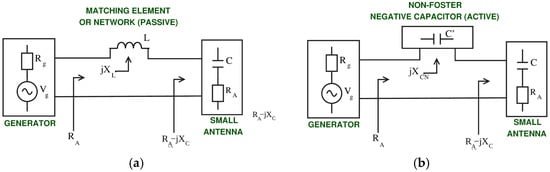 Small antenna (a) passive matching and (b) non-Foster matching.