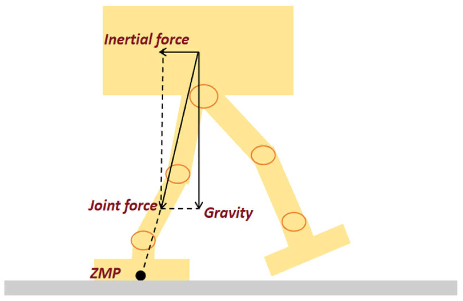 The dynamic balance of a bipedal robot is governed by the interaction of external forces and internally generated joint torques. As illustrated in the revised