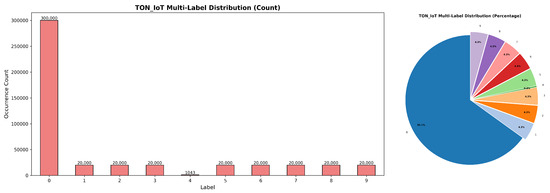 Figure 3, it illustrates the class distribution and categorization of the ToN-IoT dataset, where class 0 represents benign samples, and the remaining classes correspond to different malicious traffic families.