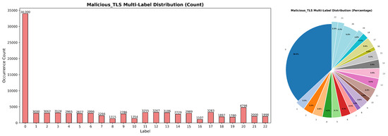 Figure 4, it presents the class distribution of the Malicious_TLS dataset, where Class 0 denotes benign samples and the rest correspond to different malicious traffic families.