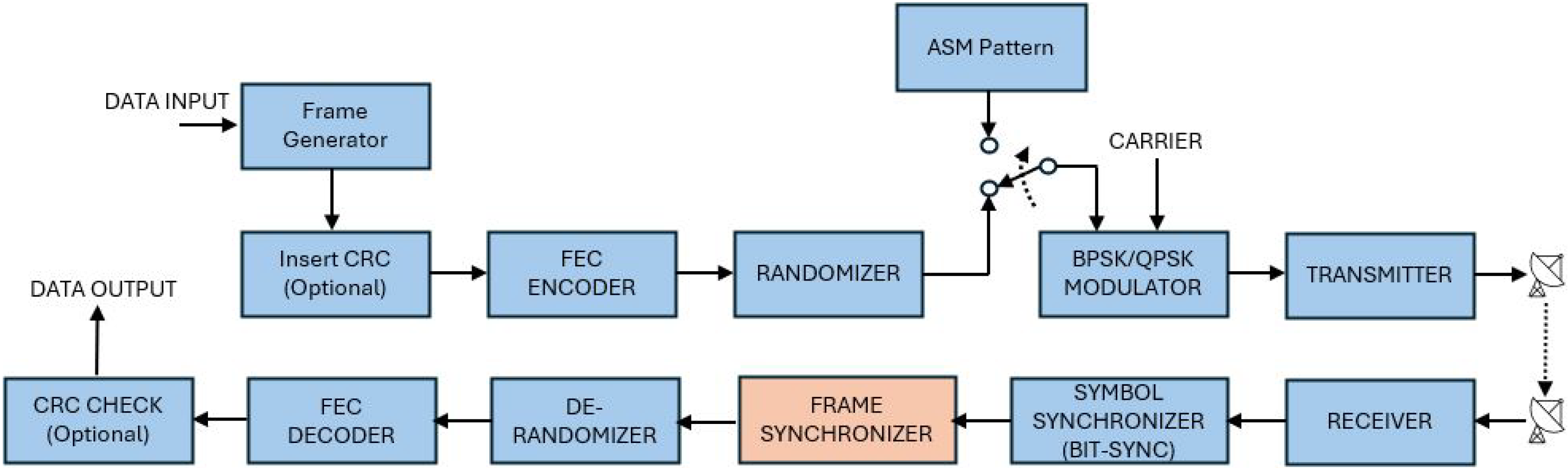 - G, A.; R, S.V.; Gupta Poddar, P. Framing and Synchronization of Satellite TTC Data. In Proceedings of the 2022 3rd International Conference for Emerging Technology (INCET), Belgaum, India, 27–29 May 2022; pp. 1–6. [Google Scholar] [CrossRef]