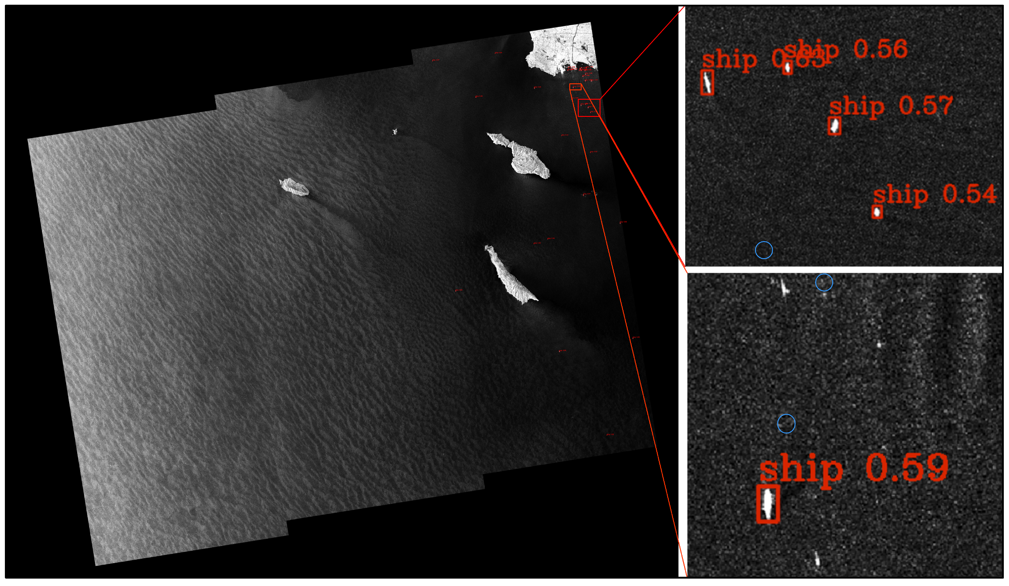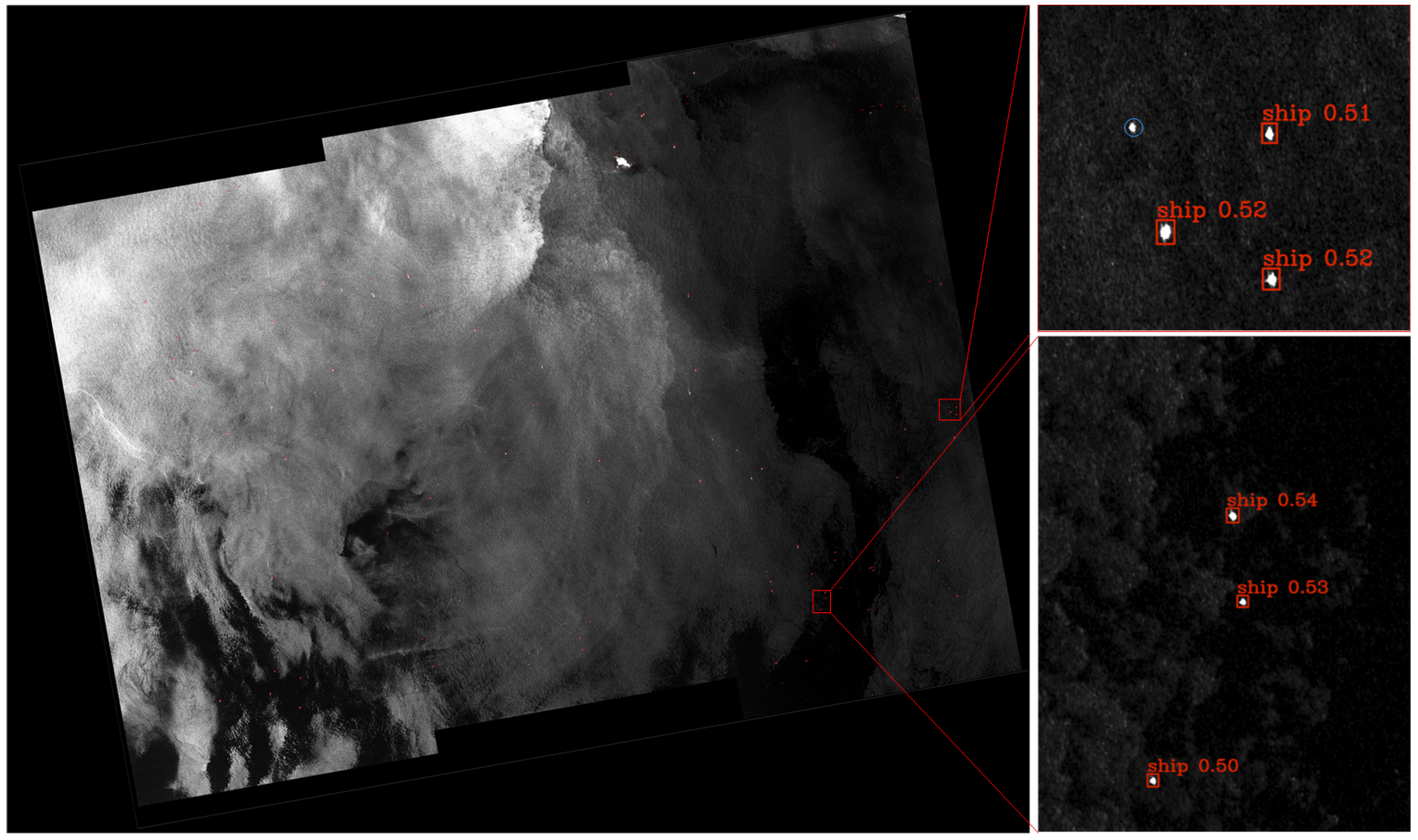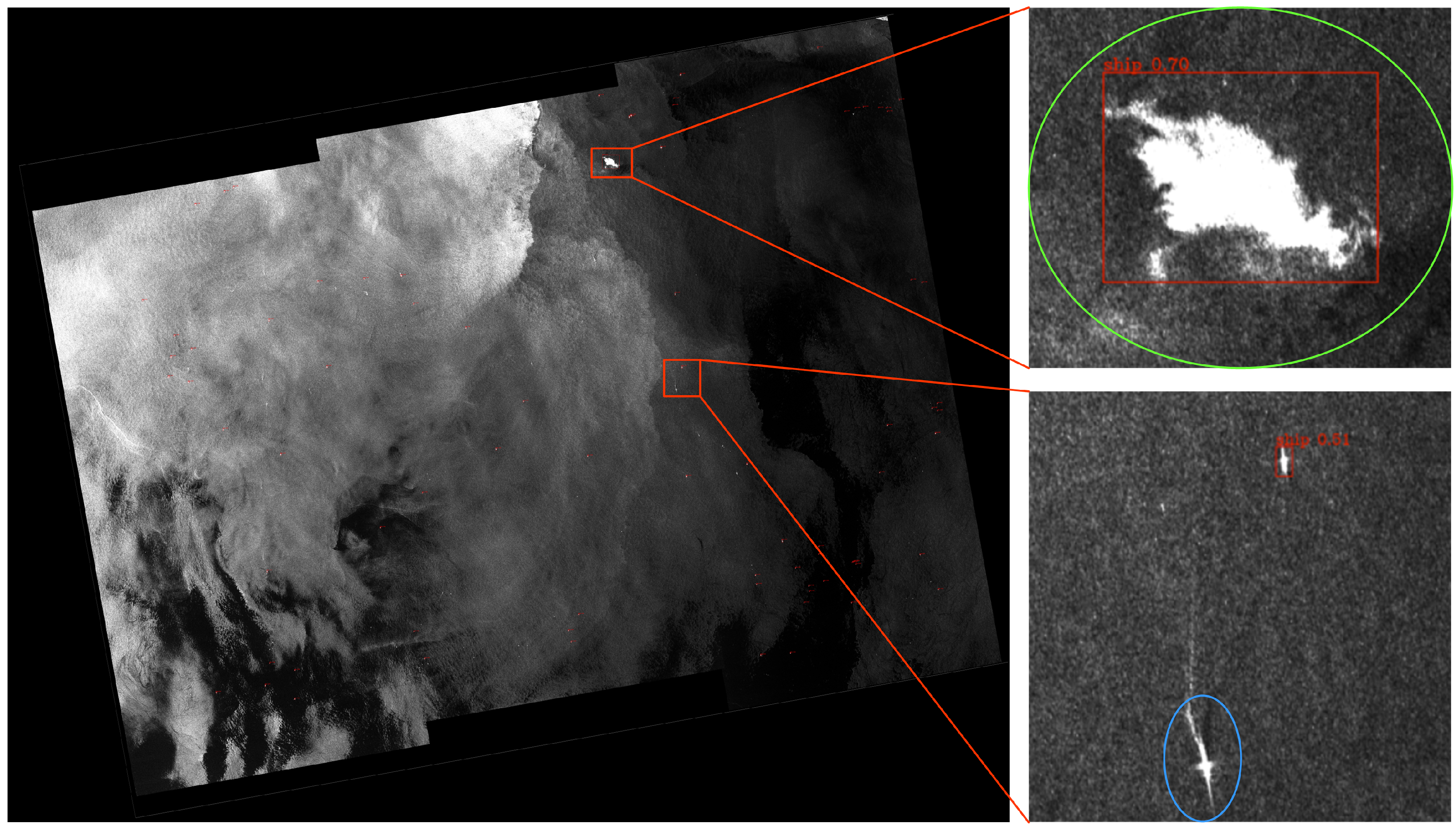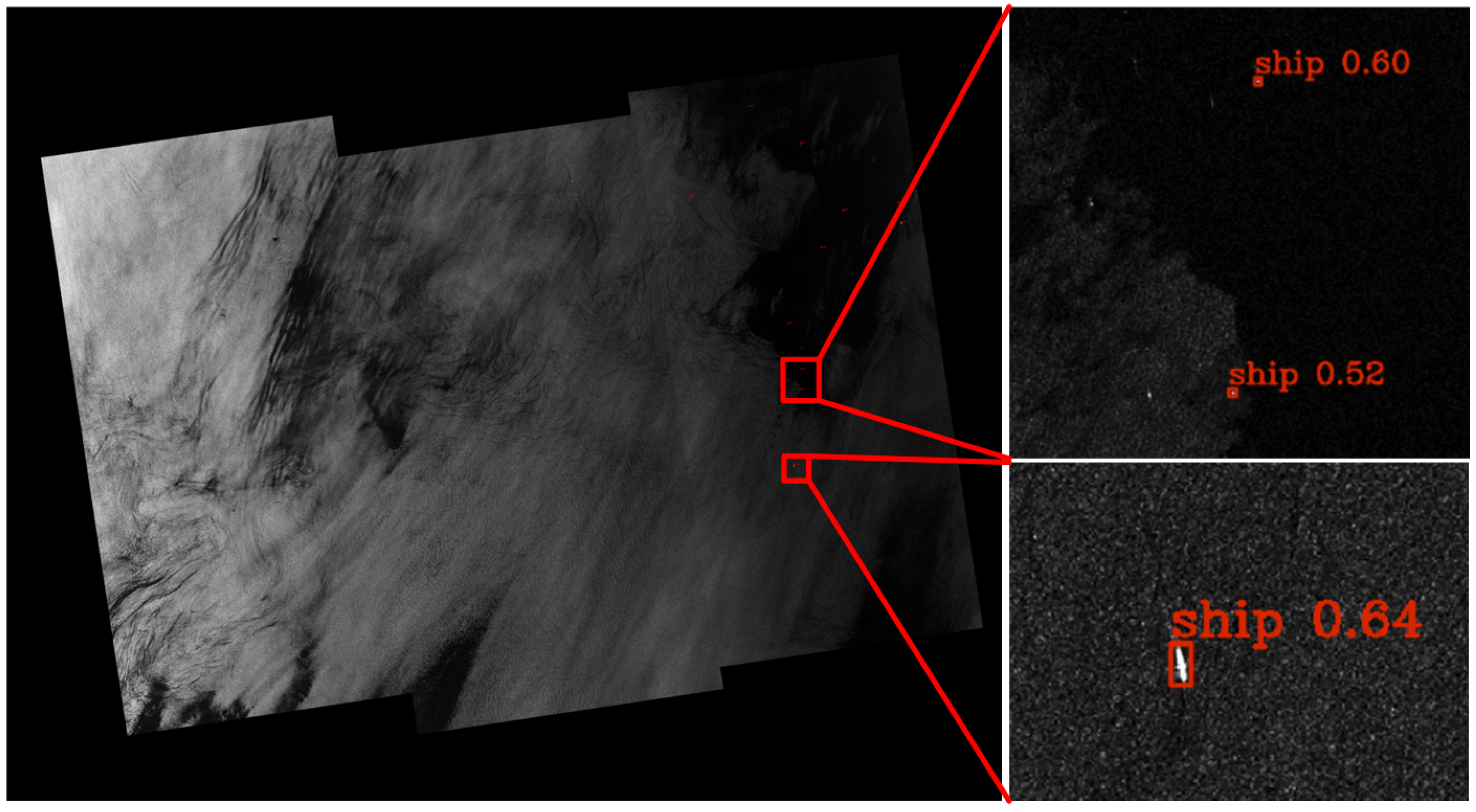 - Zhu, H.; Li, D.; Wang, H.; Yang, R.; Liang, J.; Liu, S.; Wan, J. A Progressive Saliency-Guided Small Ship Detection Method for Large Scene SAR Images. Remote Sens. 2025, 17, 3085. [Google Scholar] [CrossRef]