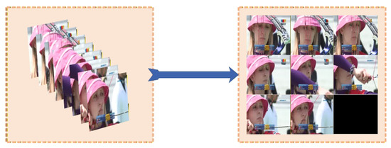 This study employs super images constructed from multiple video frames as the input to the spatial pathway. We uniformly sample M frames, i.e., , from video . To fully leverage the representational capacity of 2D convolutional operations on 2D images, inspired by Fan et al. [43], we tile sampled frames into a 2D grid as illustrated in Figure 1, generating a super image enriched with spatial information. The height and width of the super image are determined by the square root of M and the original dimensions of video frames.