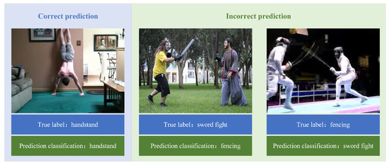 Since many actions share similarities, an increasing number of researchers are improving action recognition performance through fine-grained modeling. Wang et al. [35] inferred missing clues through “Hallucination Streams” and focused on action-related spatial regions, effectively capturing fine-grained action dynamics. Liao et al. [36] combined fine-grained feature discrimination with template consistency constraints, which can significantly improve robustness in fine-grained scenarios. This perspective is highly relevant to the task of distinguishing similar actions (e.g., “sword fight” vs. “fencing”) in complex videos. Cho et al. [37] addressed the problem of “loss of hand details” in skeleton action recognition by proposing BHaRNet, which jointly models body movements and fine hand motions through a cross-attention mechanism between the “body expert stream” and “hand expert stream”.
