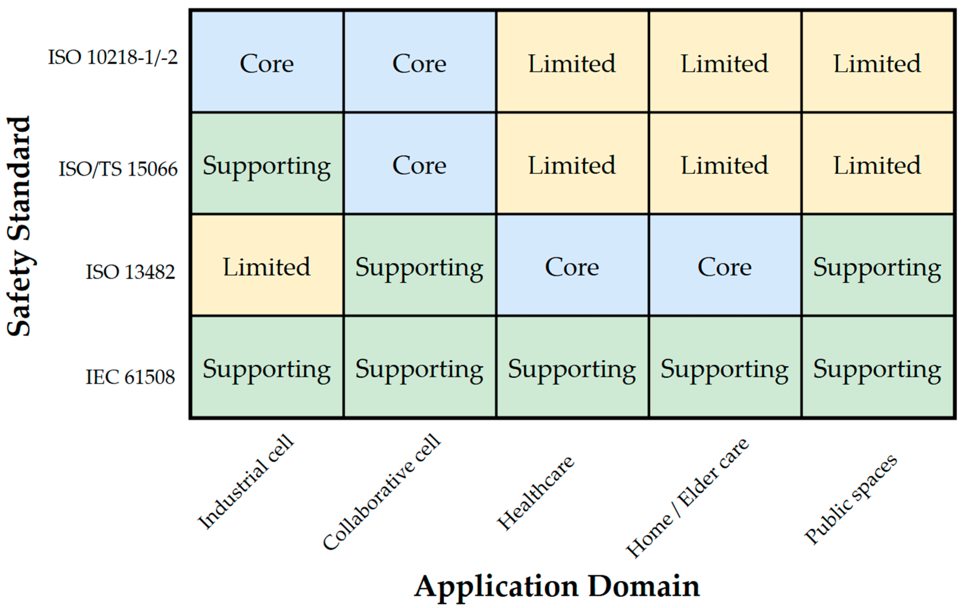 | Personal-care robot safety | ISO 13482 (mobile servant, person-carrier, physical assistant robots) | [107] | |