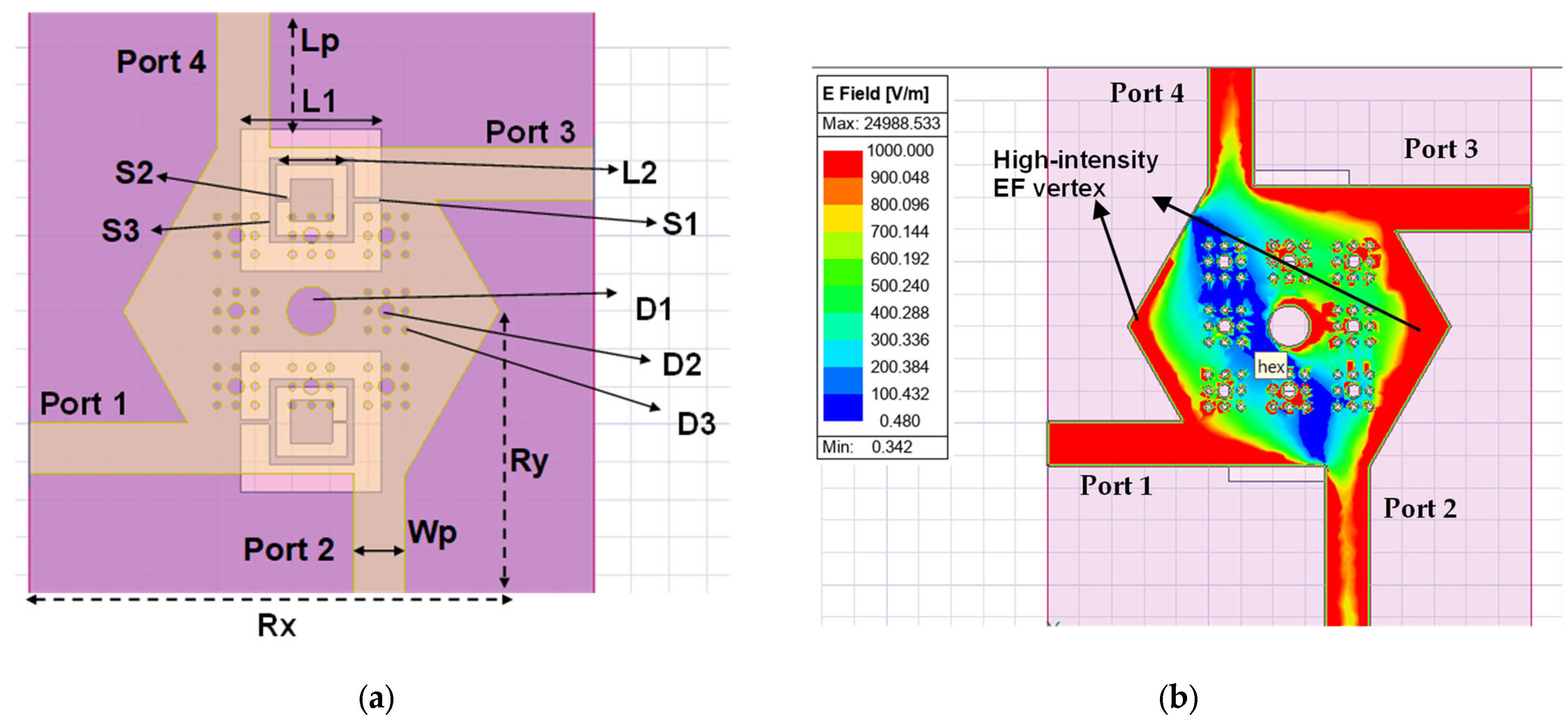 - Boundary Conditions: The structure was enclosed within an air box defined by an open radiation boundary condition, placed at a minimum distance of λ/4 (one quarter wavelength at the lowest frequency) from the edges of the structure.