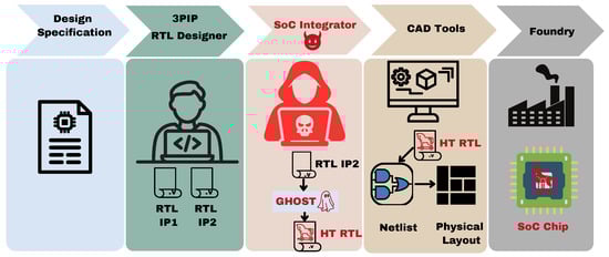 It is crucial to note that in this model, while the SoC integrator is considered untrusted, the foundry responsible for chip fabrication is assumed to be trusted. The attacker’s modifications are confined to the RTL level.
