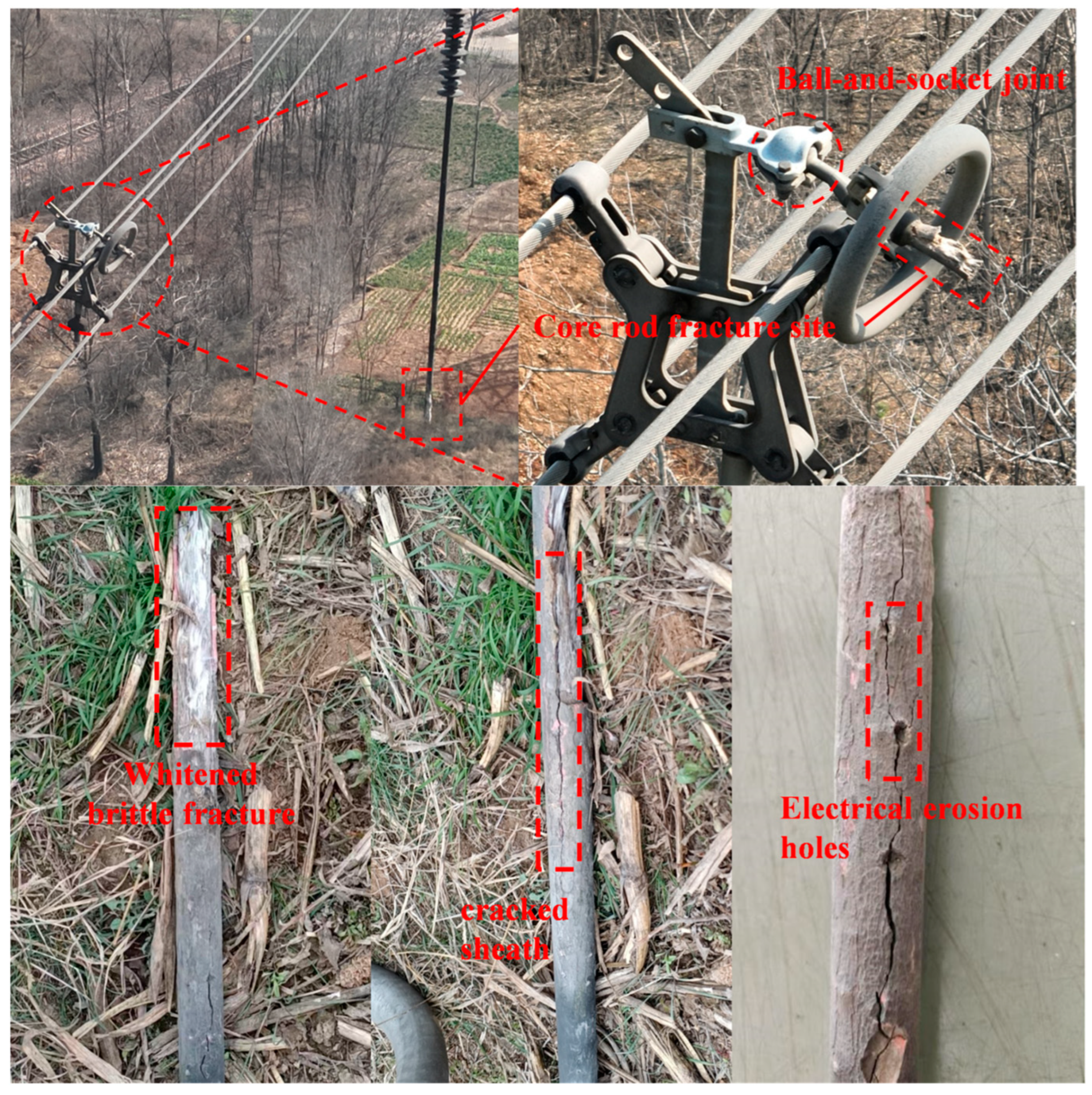 12]. In recent years, decay-like fracture has become an increasingly prominent issue in composite insulators, arising from the combined action of electrical, environmental, and mechanical stresses during long-term operation [