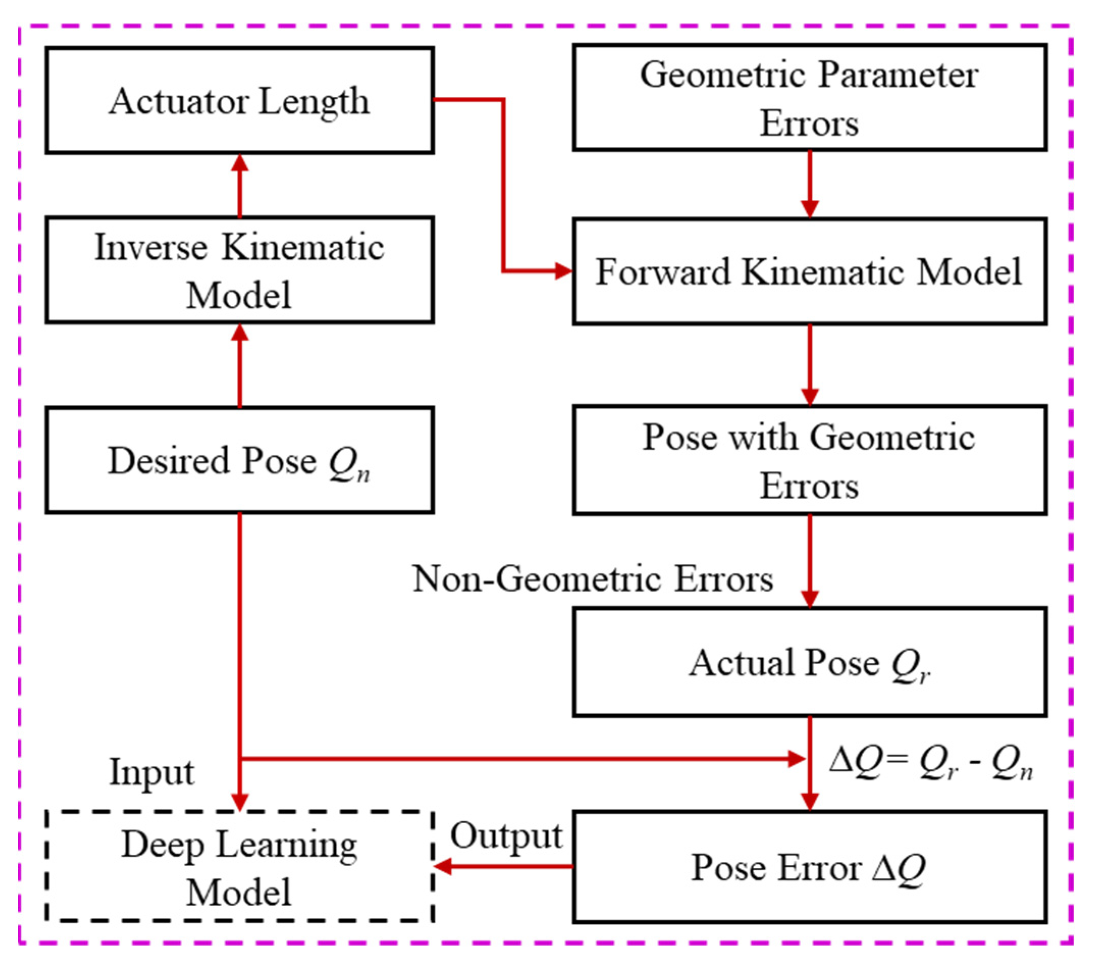 - Zhu, X.; Liu, Z.; Cai, C.; Yang, M.; Zhang, H.; Fu, L.; Zhang, J. Deep learning-based predicting and compensating method for the pose deviations of parallel robots. Comput. Ind. Eng. 2024, 191, 110179. [Google Scholar] [CrossRef]