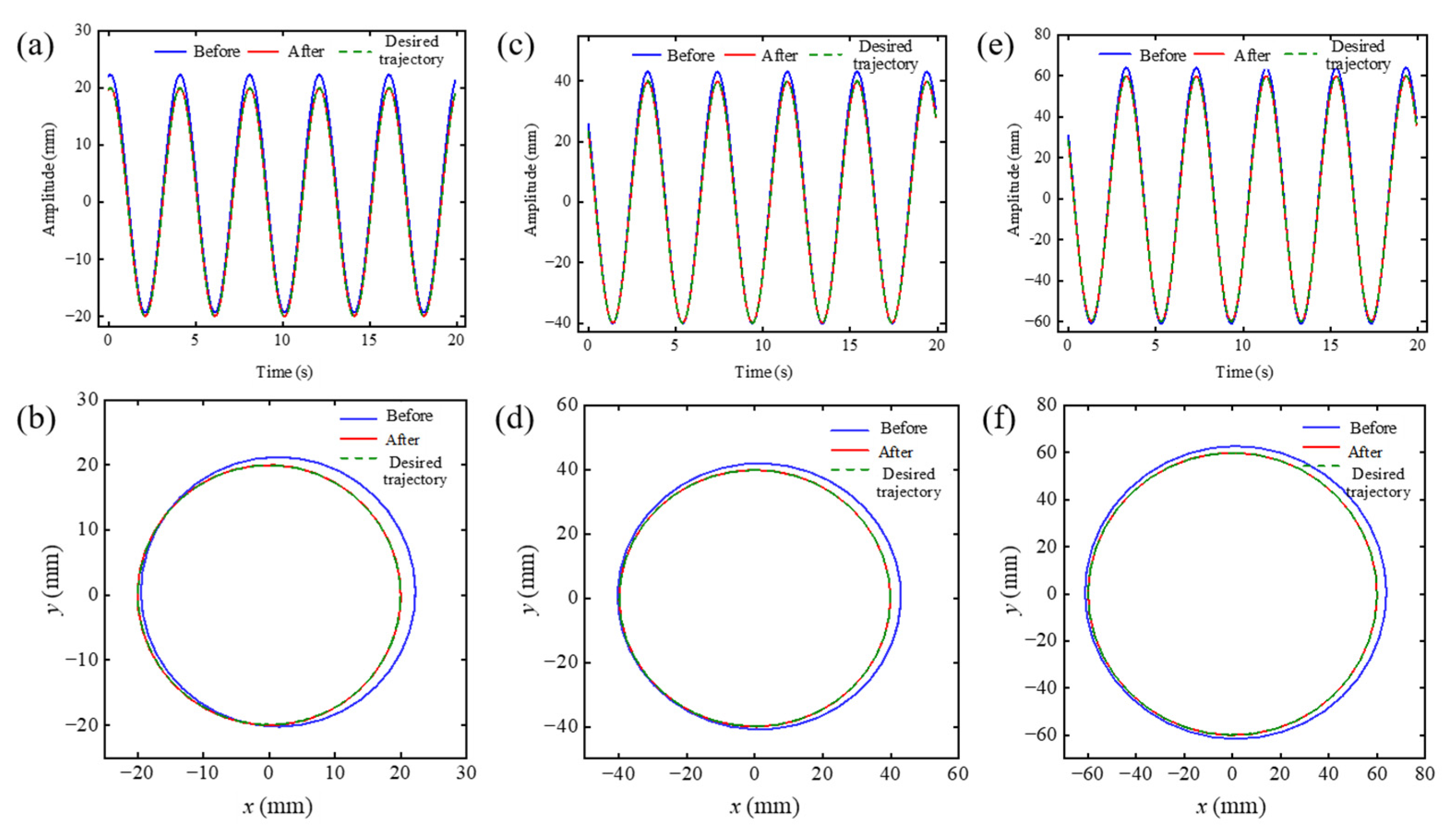 | Amplitude/Radius | Before Compensation (mm) | After Compensation (mm) | ||