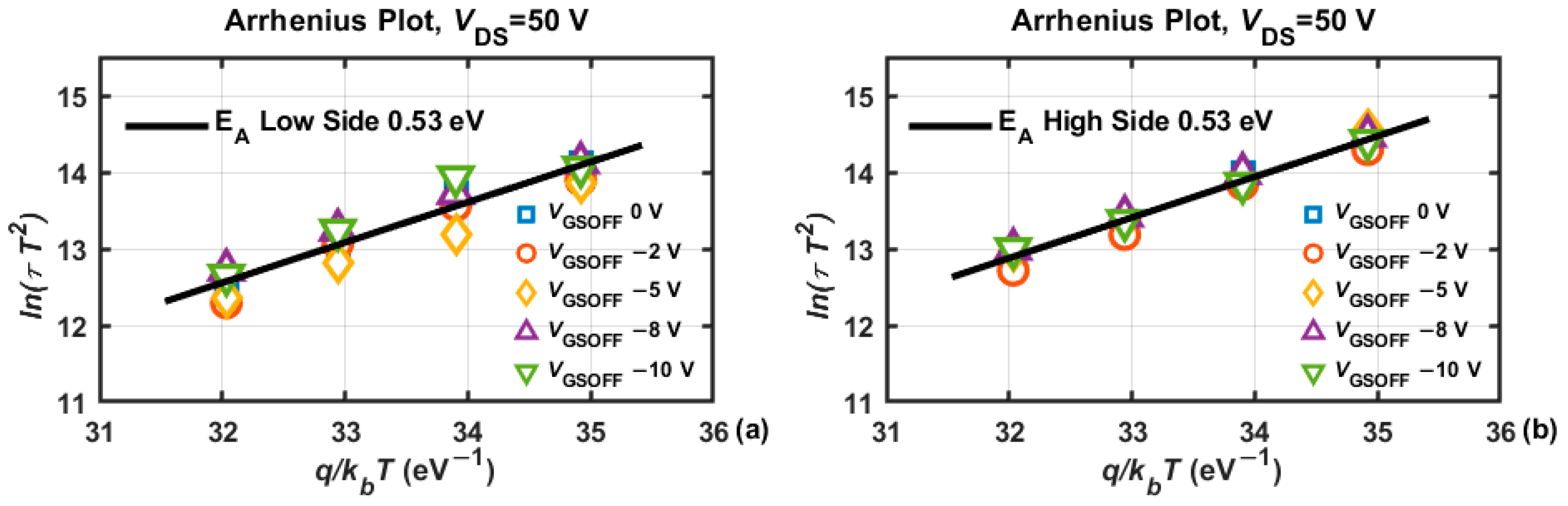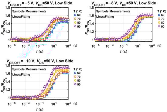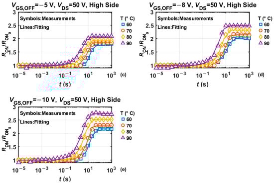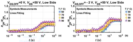 - Meneghini, M.; Vanmeerbeek, P.; Silvestri, R.; Dalcanale, S.; Banerjee, A.; Bisi, D.; Zanoni, E.; Meneghesso, G.; Moens, P. Temperature-Dependent Dynamic RON in GaN-Based MIS-HEMTs: Role of Surface Traps and Buffer Leakage. IEEE Trans. Electron. Devices 2015, 62, 782–787. [Google Scholar] [CrossRef]