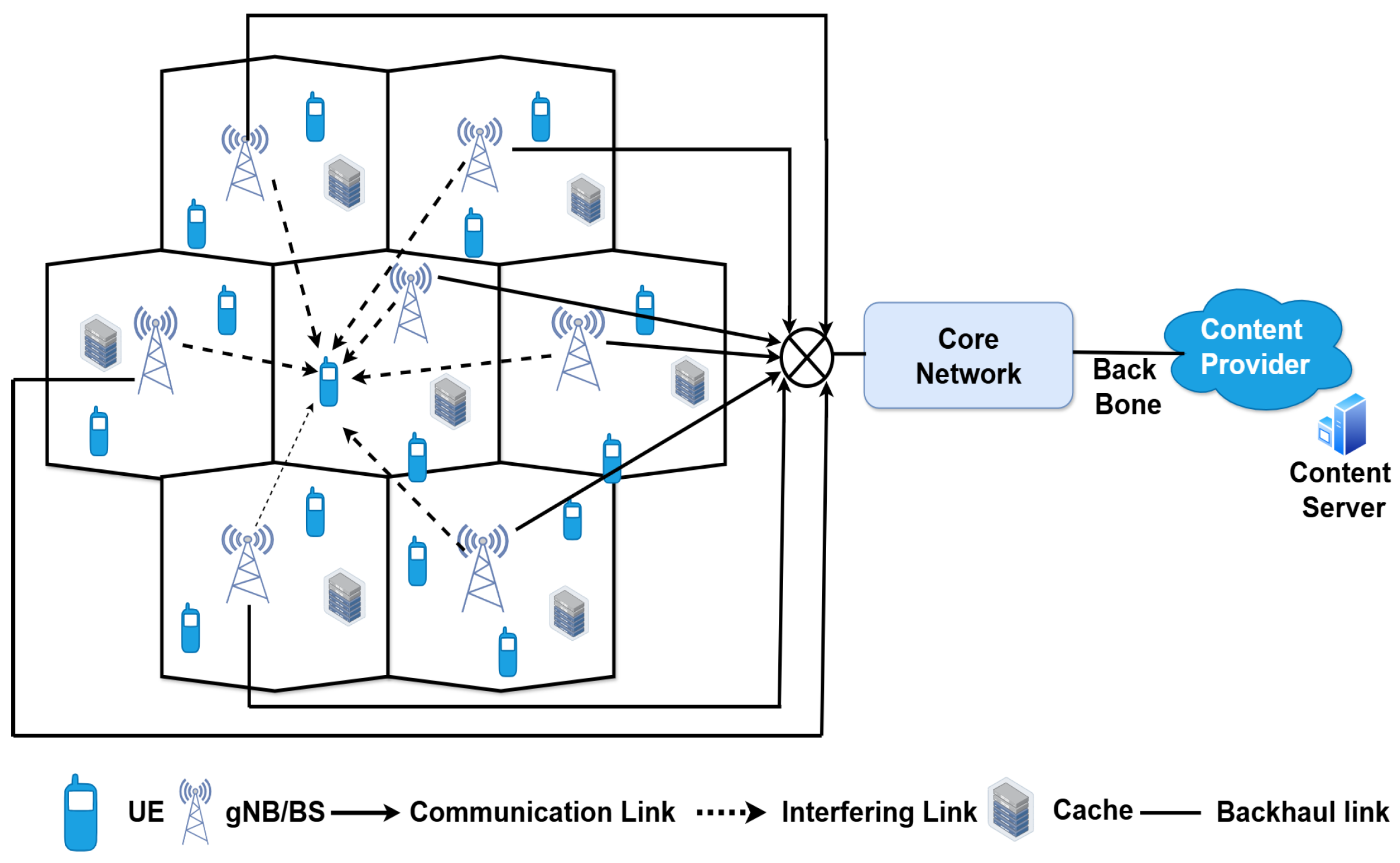 - Biswas, S.; Zhang, T.; Singh, K.; Vuppala, S.; Ratnarajah, T. An analysis on caching placement for millimeter–micro-wave hybrid networks. IEEE Trans. Commun. 2019, 67, 1645–1662. [Google Scholar] [CrossRef]