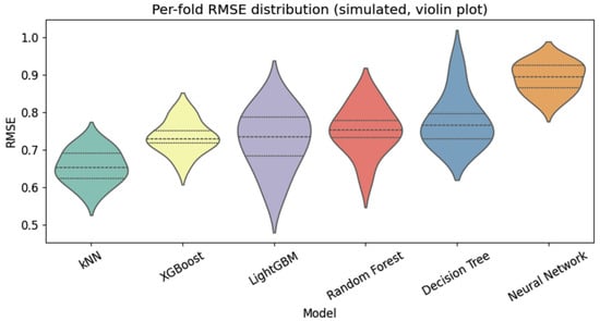 The Table 2 above summarizes the hyperparameter configurations explored for each machine learning model. The selected ranges were designed to systematically probe the trade-off between model complexity, generalization capacity, and computational efficiency, ensuring a balanced and reproducible experimental framework. For Neural Networks (NN), variations in the number of hidden layers, activation functions, and learning rates capture the effect of network depth and nonlinear activation on convergence and overfitting control. In k-Nearest Neighbors (k-NN), tuning the number of neighbors, distance metric, and weighting scheme examines the locality dependencies of the feature space and the influence of metric geometry on model’s performance. For Decision Trees (DTs), the minimum samples per split parameter isolates the relationship between node purity and model variance, while keeping DTs as a simple, interpretable baseline for ensemble comparison. Random Forest (RF) tuning included ensemble size and splitting criterion, maintaining fixed depth to evaluate ensemble effects independently of tree complexity. In LightGBM, the number of leaves, boosting iterations, maximum depth, and learning rate were adjusted to control tree growth, regularization strength, and learning dynamics. Similarly, for XGBoost, tuning the L2 regularization term , number of trees, maximum depth, and learning rate allowed examination of the algorithm’s balance between model expressiveness, regularization, and convergence speed. The chosen hyperparameter combinations were designed to cover a range of low-to-high capacity levels across algorithms, enabling a thorough comparison of bias-variance behavior, stability, and computational cost, all within a consistent cross-validation framework.