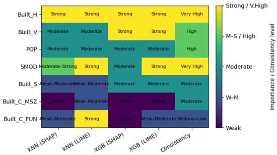Combined SHAP and LIME feature importance and consistency across kNN and XGBoost models.