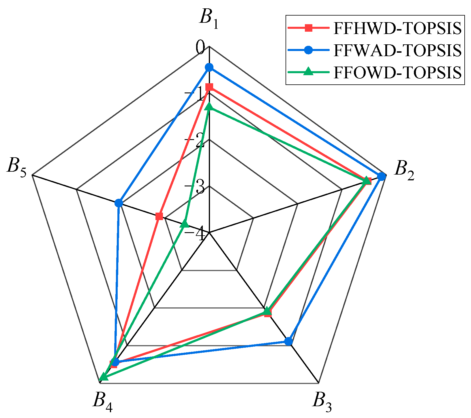 | FFHWD-TOPSIS | B2 > B4 > B1 > B3 > B5 |