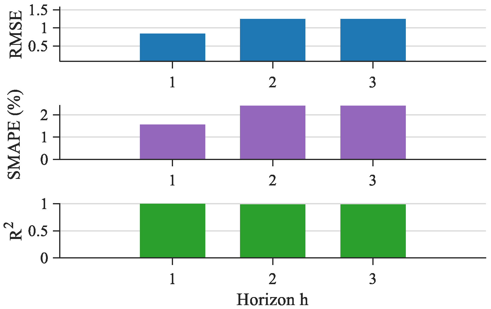| h | Model | RMSE | MAE | sMAPE | R2 |