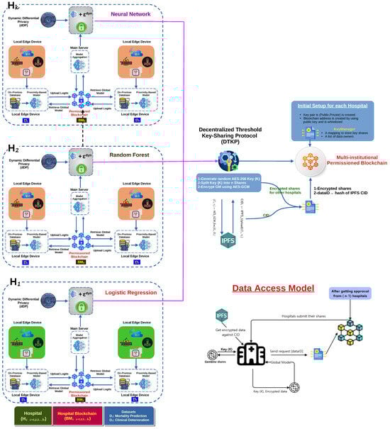 - Blockchain-Enhanced Federated Learning Architecture. Designs a novel integration of Quorum blockchain with federated learning to create tamper-proof audit trails for model sharing while maintaining data decentralization across healthcare institutions.