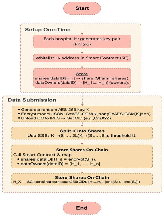 Youyang et al. [24] developed a blockchain-based threshold signature scheme for decentralized key management in homogeneous federated learning. Raushan et al. [25] leveraged Hyperledger Fabric for model integrity verification, while Xiaokang et al. [26] stored encrypted logits on IPFS with blockchain-anchored hashes for federated distillation. Mishra et al. [21] implemented Shamir’s secret sharing with BLS signatures for decentralized trust in homogeneous federated learning.