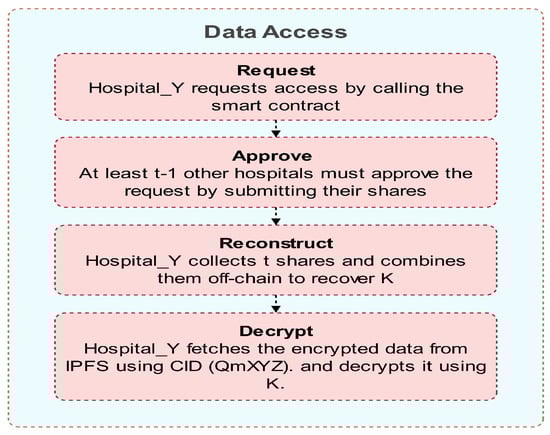 - Decentralized Key Management for Secure Sharing. Develops a threshold cryptography protocol for distributed key control, ensuring that health data access requires multi-party authorization while maintaining blockchain-verifiable audit trails.