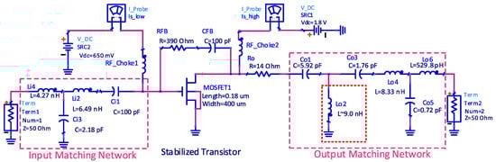 - Shaeffer, D.K.; Lee, T.H. A 1.5-V, 1.5-GHz CMOS low noise amplifier. IEEE J. Solid-State Circuits 2002, 32, 745–759. [Google Scholar] [CrossRef]