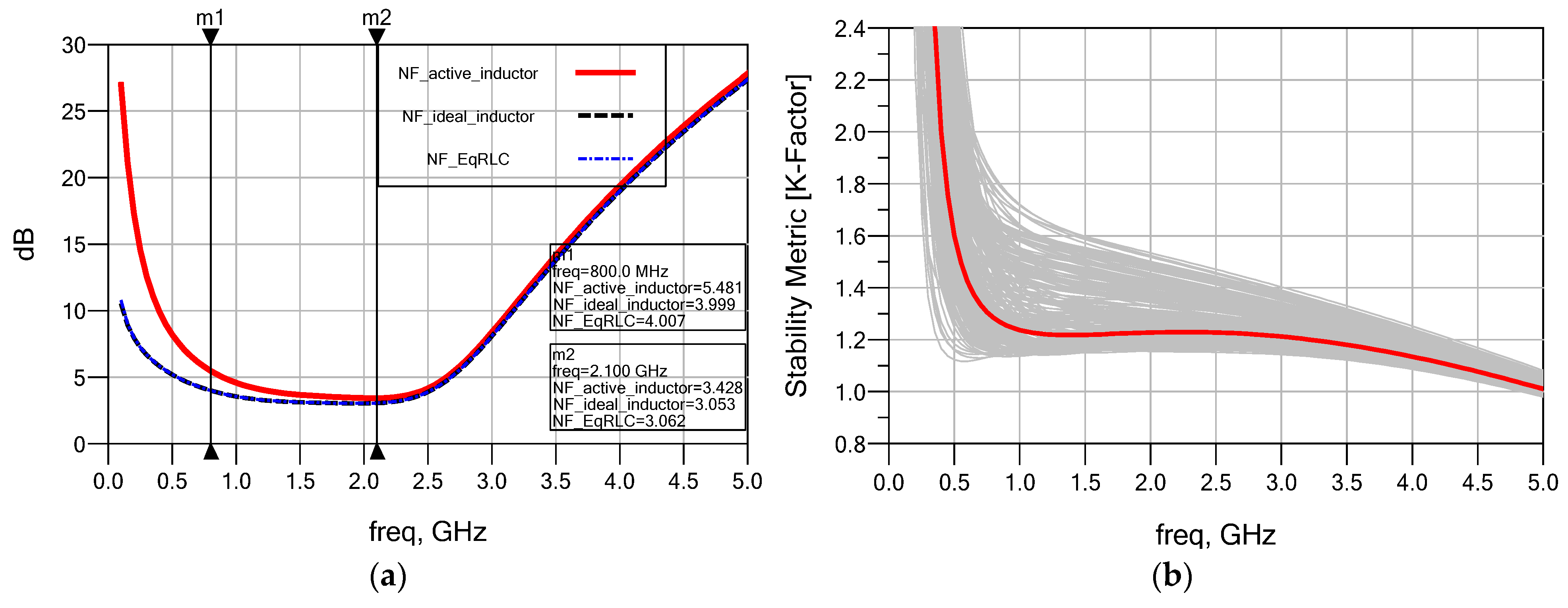 - Sabbaghi, A.; Ebrahimi, E. A low-noise current-reused CMOS active inductor by exploiting Gm-boosting technique. IET Microw. Antennas Propag. 2021, 15, 1914–1926. [Google Scholar] [CrossRef]