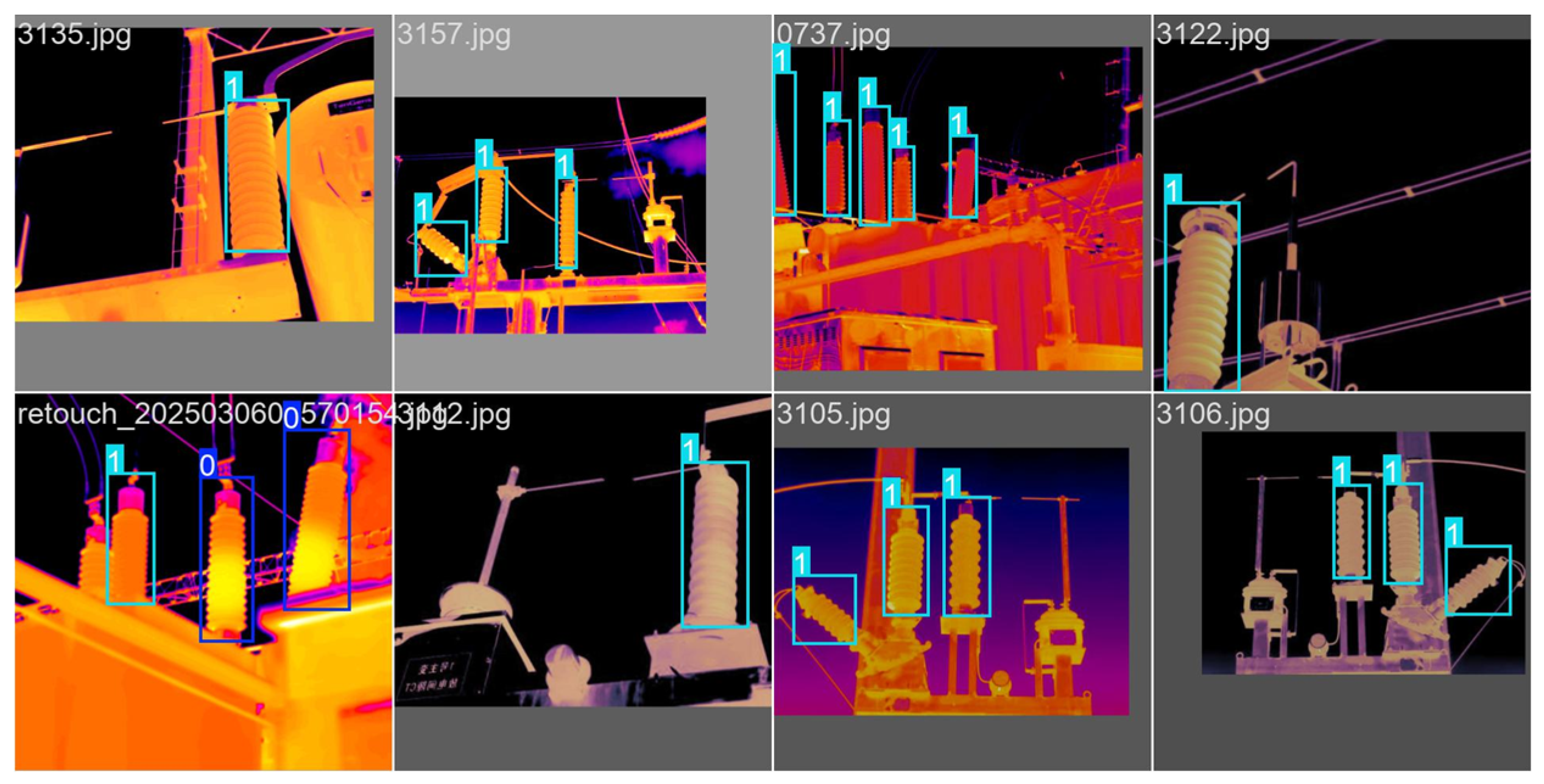 - DL/T 664-2008; Application Specification for Infrared Diagnosis of Live Equipment. Industry Standard—Electric Power. Wuhan High Voltage Research Institute, State Grid: Wuhan, China; East China Grid Company Limited: Wuhan, China; East China Electric Power Test & Research Institute Co., Ltd.: Wuhan, China, 2008; p. 38.