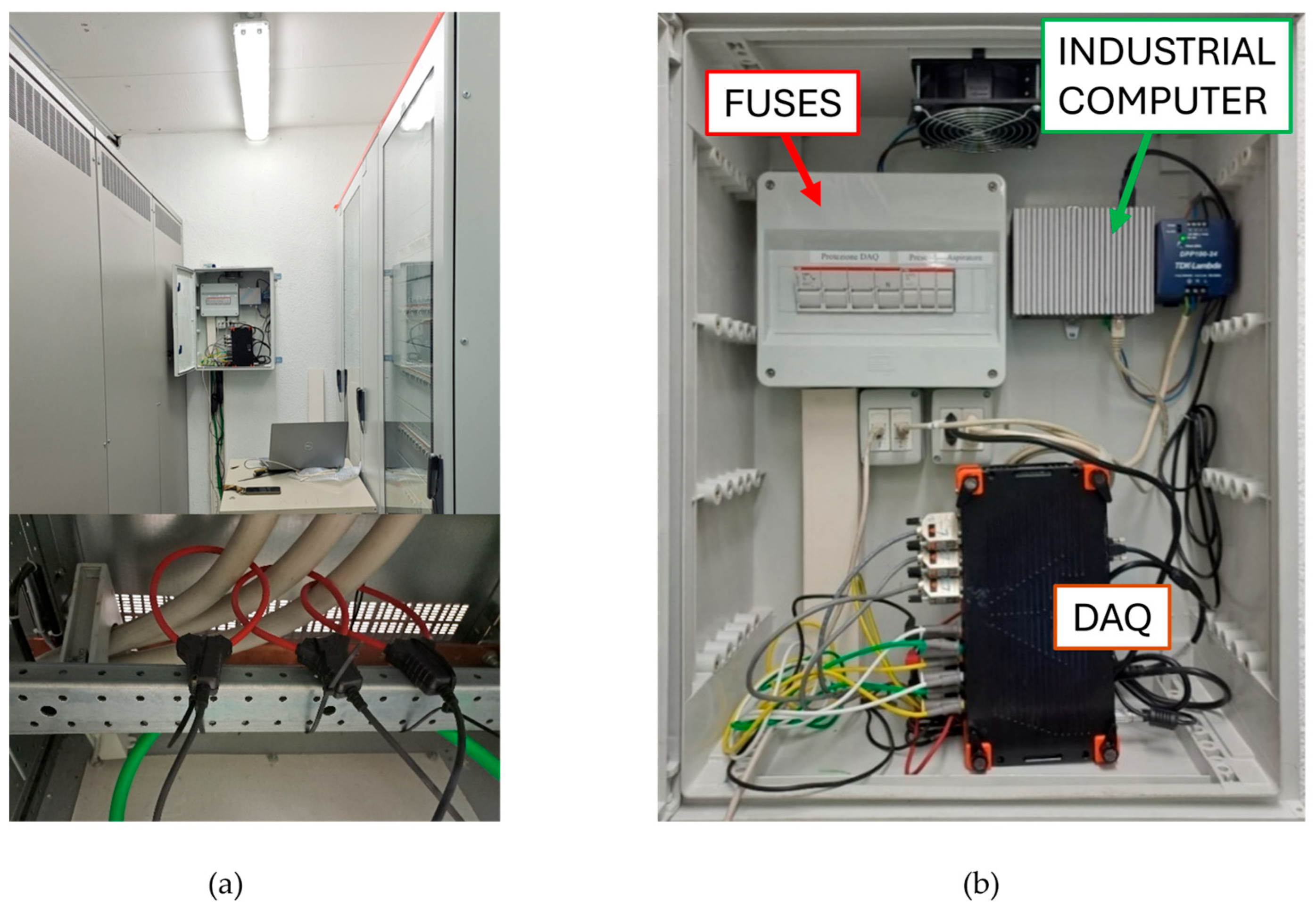 The acquisition system has been thought to be installed permanently or semi-permanently (some months) and to be remote controlled. To satisfy this requirement, an industrial computer is installed with the DAQ. Moreover, the internet connection has been setup to remotely control the acquisitions. However, installing similar hardware for every motor to be monitored would have highly increased the total costs unacceptably. Therefore, the following alternative installation has been idealized and practiced.