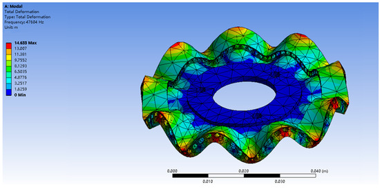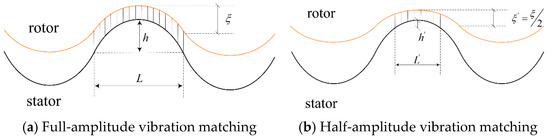 When the rotor amplitude is , the contact length achieved in coordination with the stator is , and the contact height is , as depicted in Figure 1a. Whereas, when the rotor amplitude is , the contact length achieved in coordination with the stator is , and the contact height is , as shown in Figure 1b. This gives rise to two distinct vibration mode combination modalities.