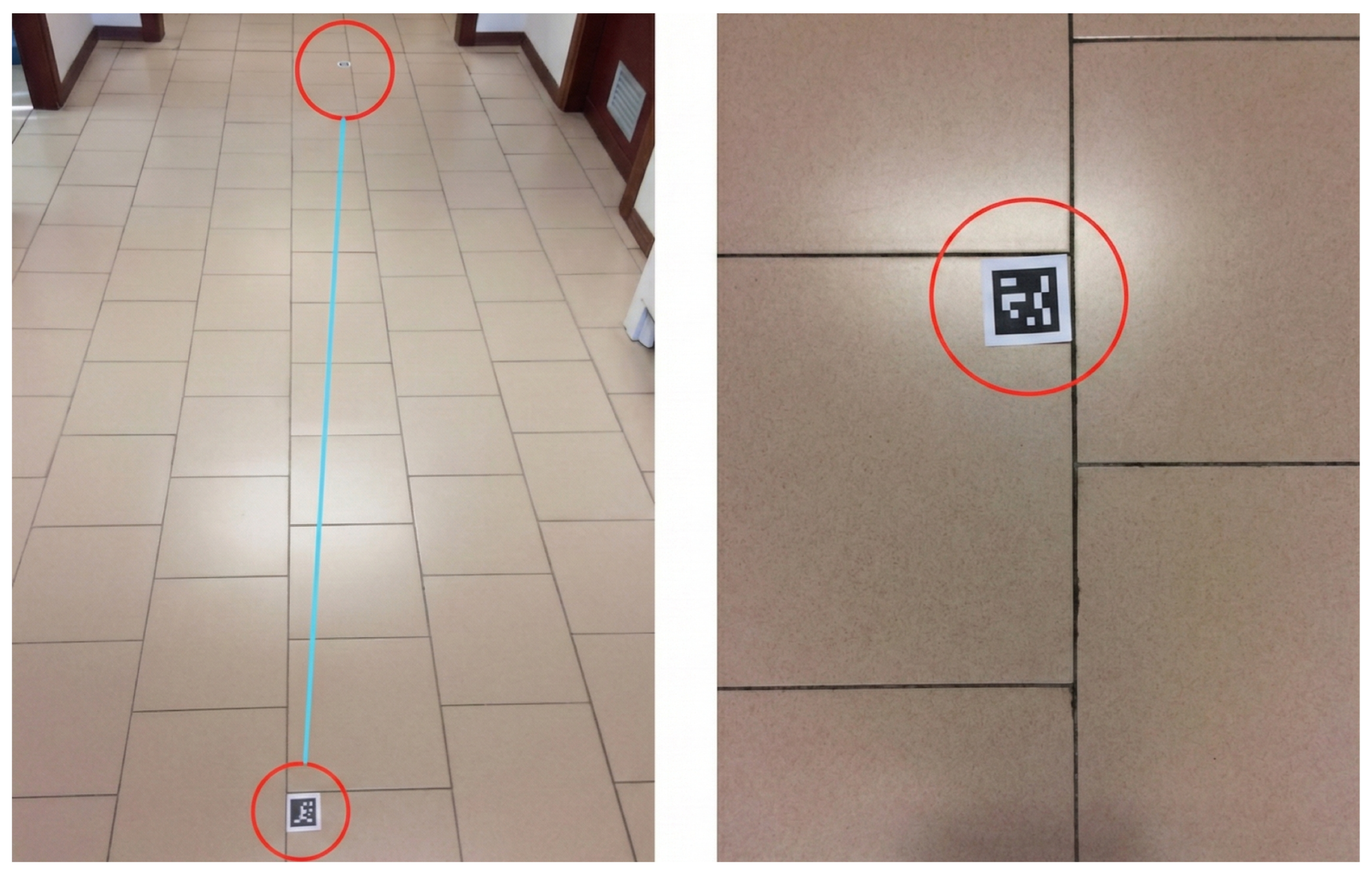 - Wang, J.; Olson, E. AprilTag 2: Efficient and robust fiducial detection. In Proceedings of the 2016 IEEE/RSJ International Conference on Intelligent Robots and Systems (IROS), Daejeon, Republic of Korea, 9–14 October 2016; pp. 4193–4198. [Google Scholar] [CrossRef]