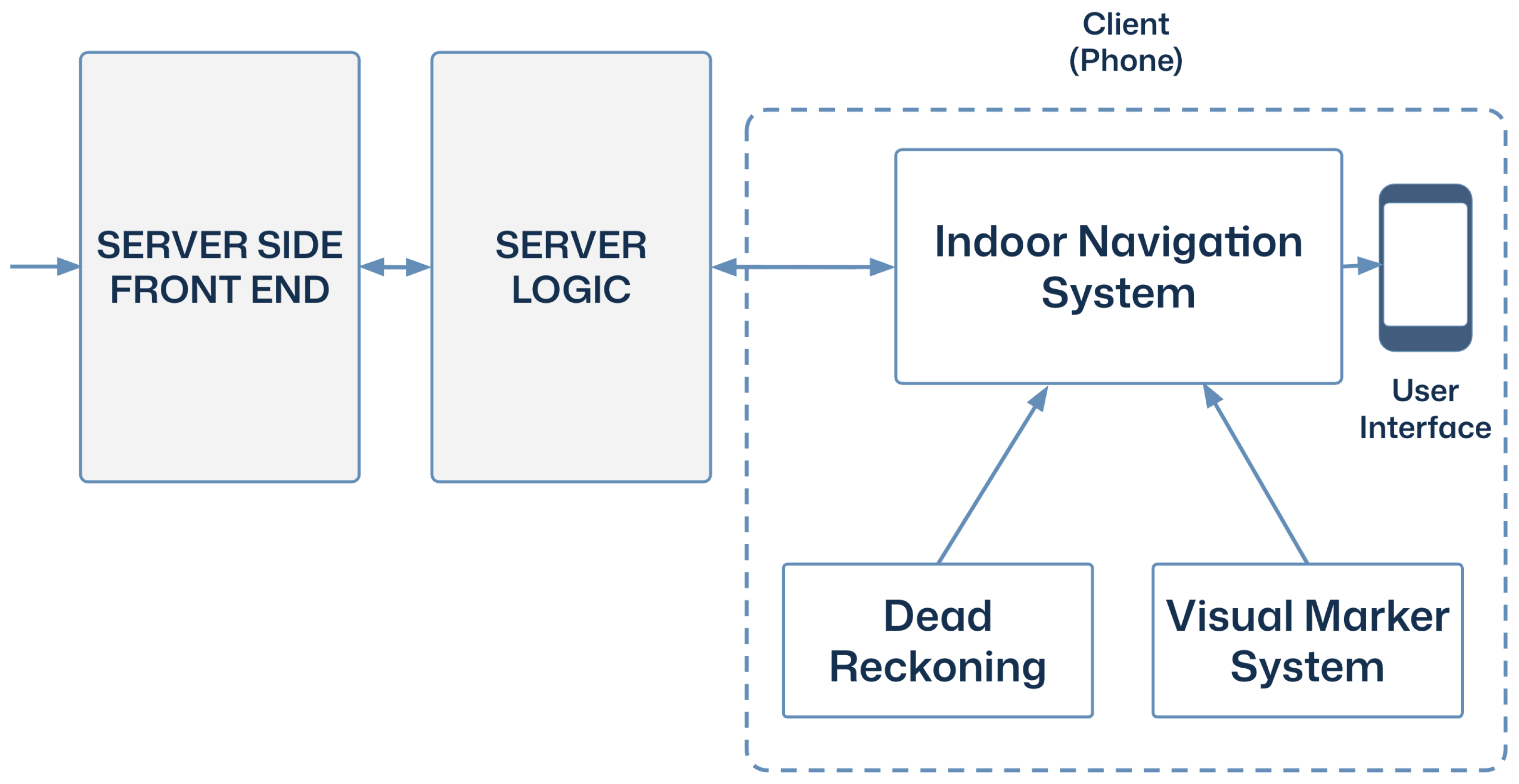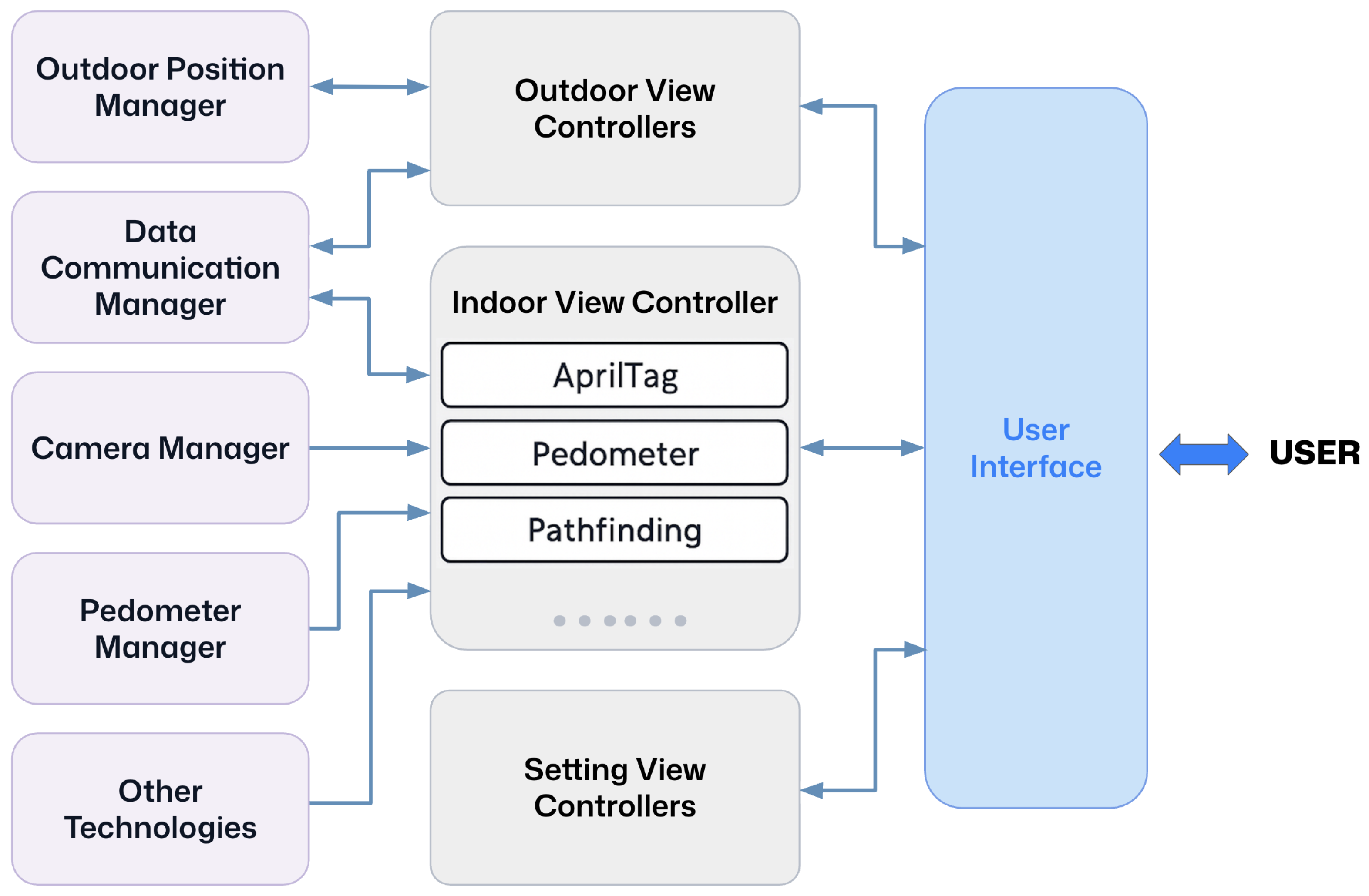 - User-friendly: The system must provide intuitive interfaces with passive localization and clear navigation guidance, minimizing cognitive workload for end users.