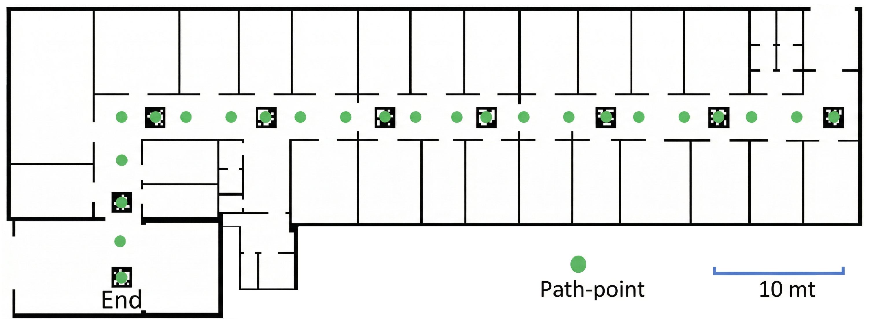 - The introduction of Path-Points, a concept for discretizing the walkable space into predefined locations. This serves to stabilize position estimates and mitigate sensor drift.