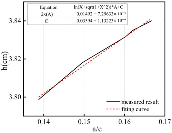 According to (38) and the measured data from 25 samples, the original data (solid black line) and the fitted results (red dashed line) are shown in Figure 12. The calculated distance between the two phase centers, denoted as , is 0.01492 m, with a measurement error of less than 0.000729 m, considering the effects of turntable positioning accuracy, horn antenna movement error, and system phase drift. These results confirm the existence of two distinct phase centers. All validation reported in this paper is based on controlled indoor experiments on a laboratory testbed, and no field or airborne deployment has yet been conducted.