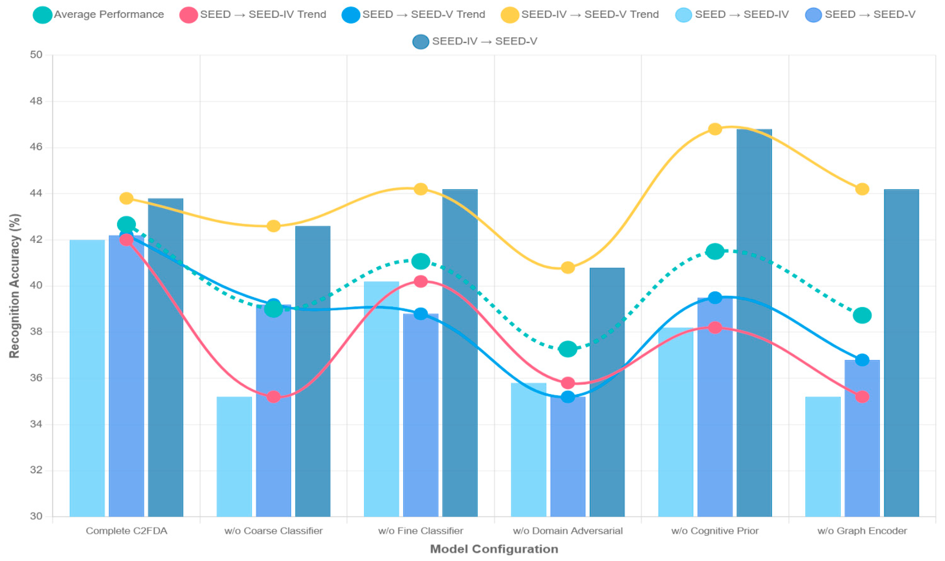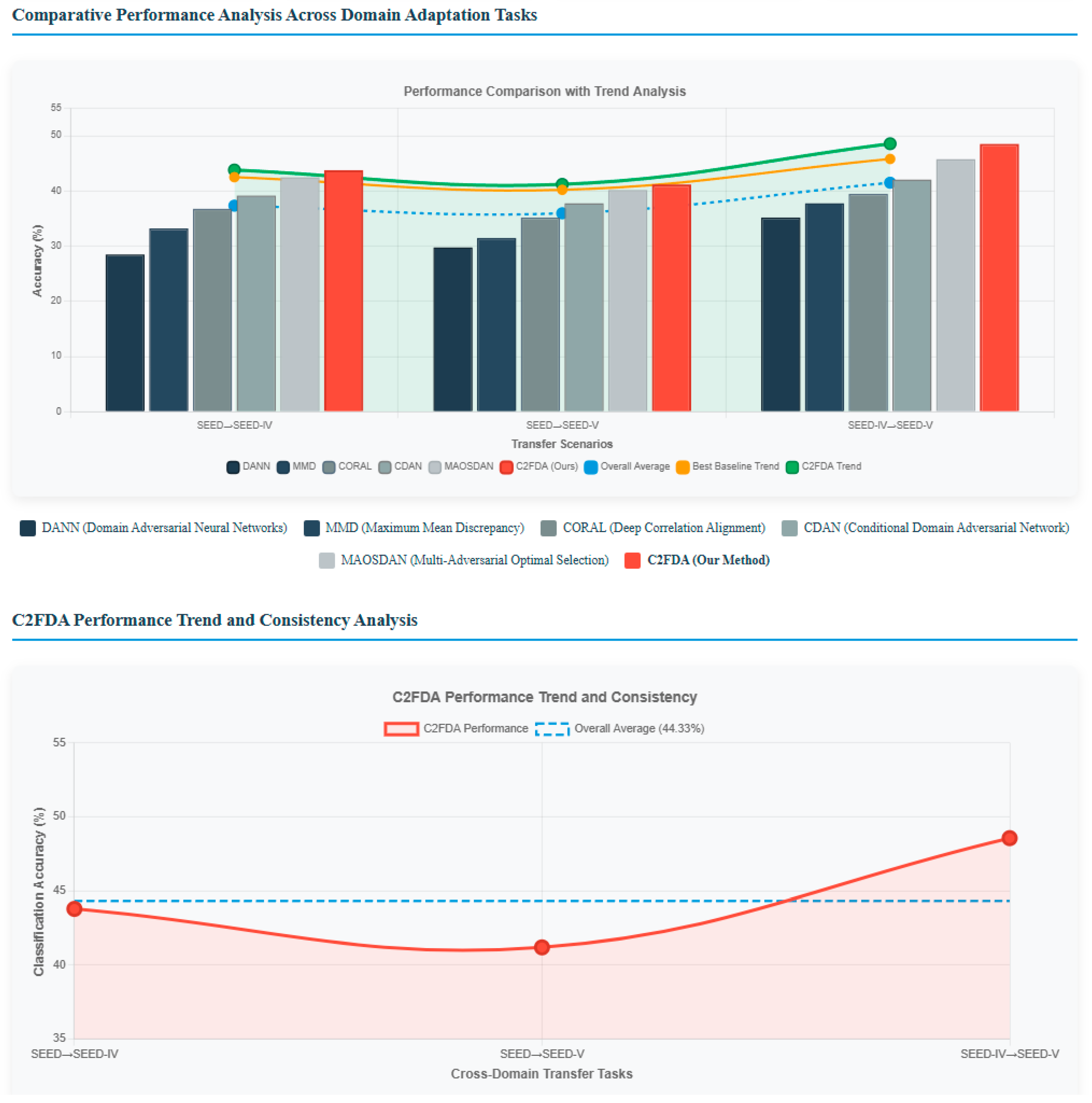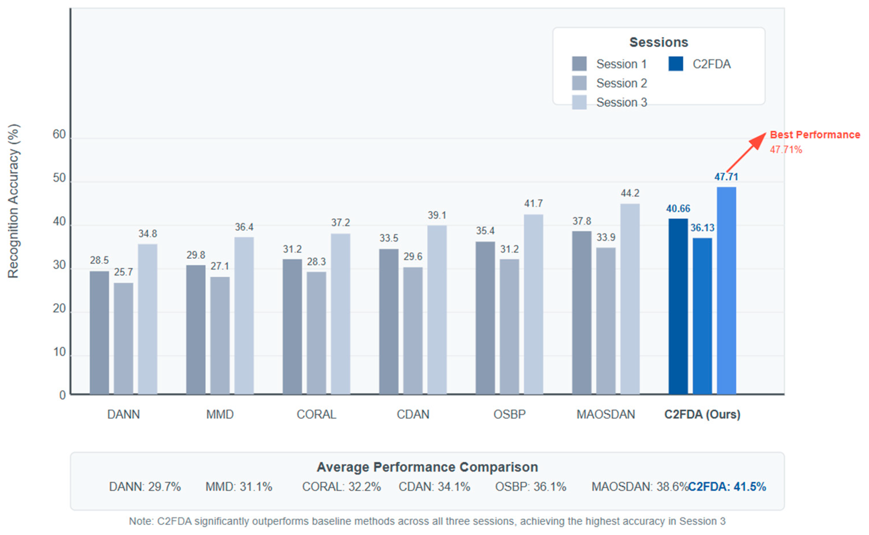 (3) Through extensive transfer experiments on three datasets, our experimental results demonstrate the reliability of the C2FDA method in open-set EEG emotion recognition.